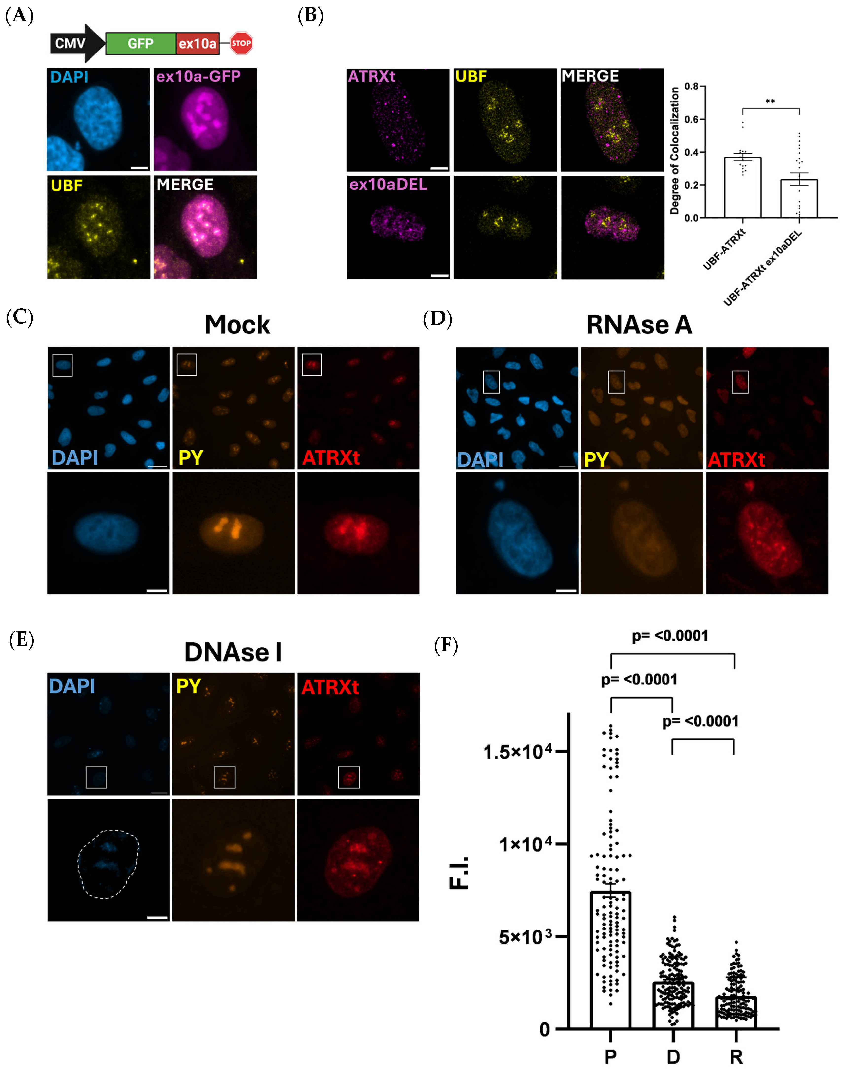2.3. ATRXt Localizes to the Nucleolus in an RNA-Dependent Manner