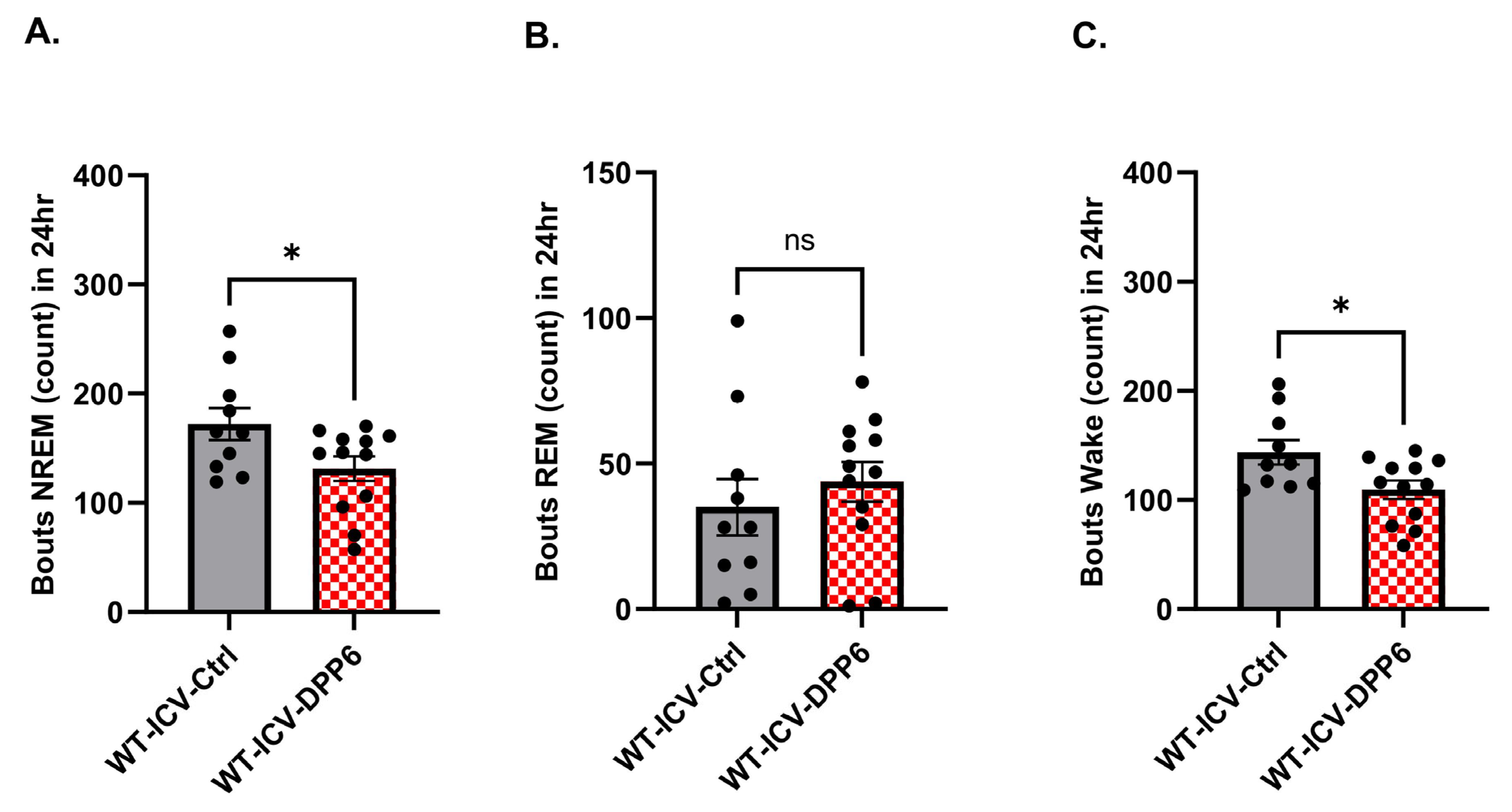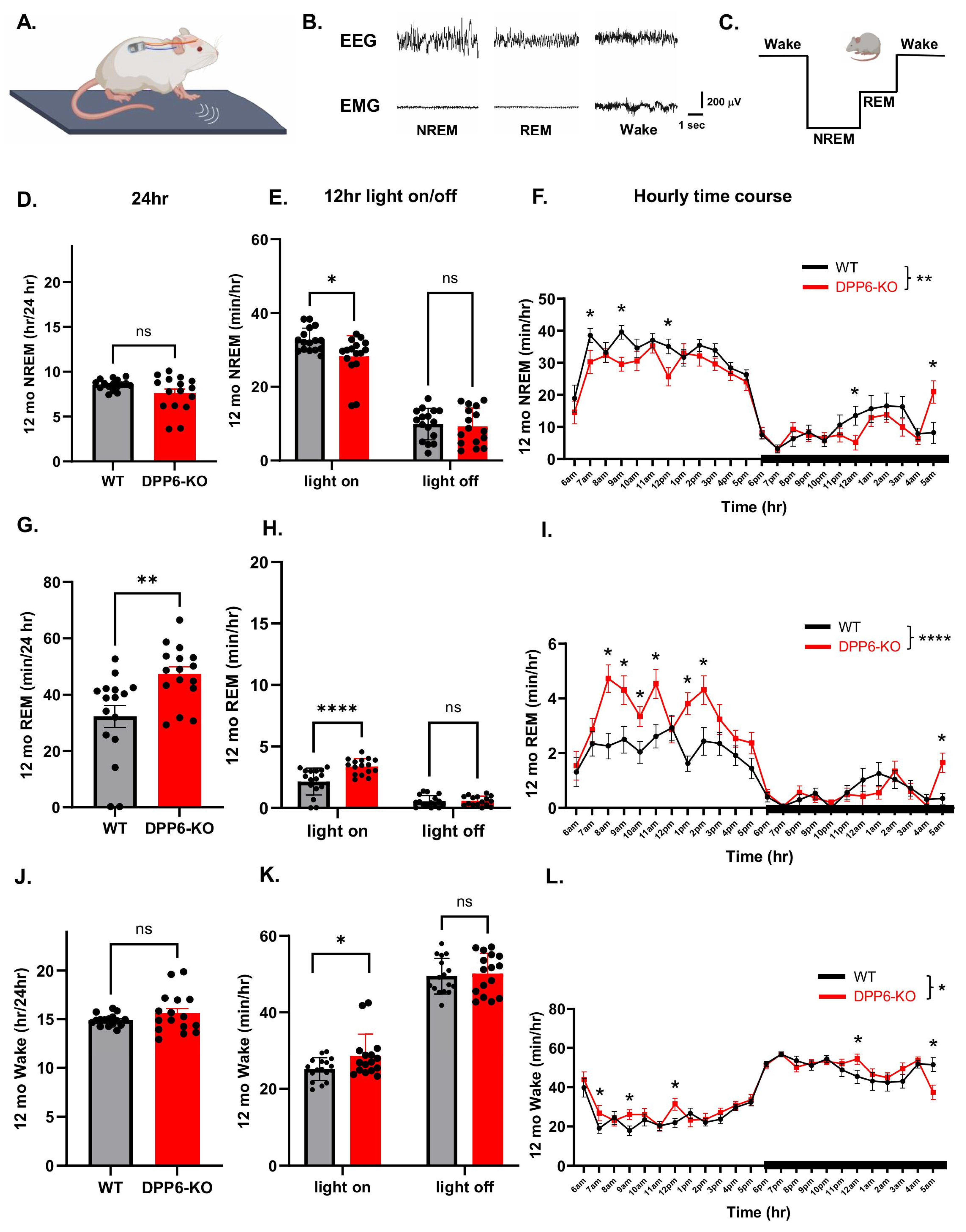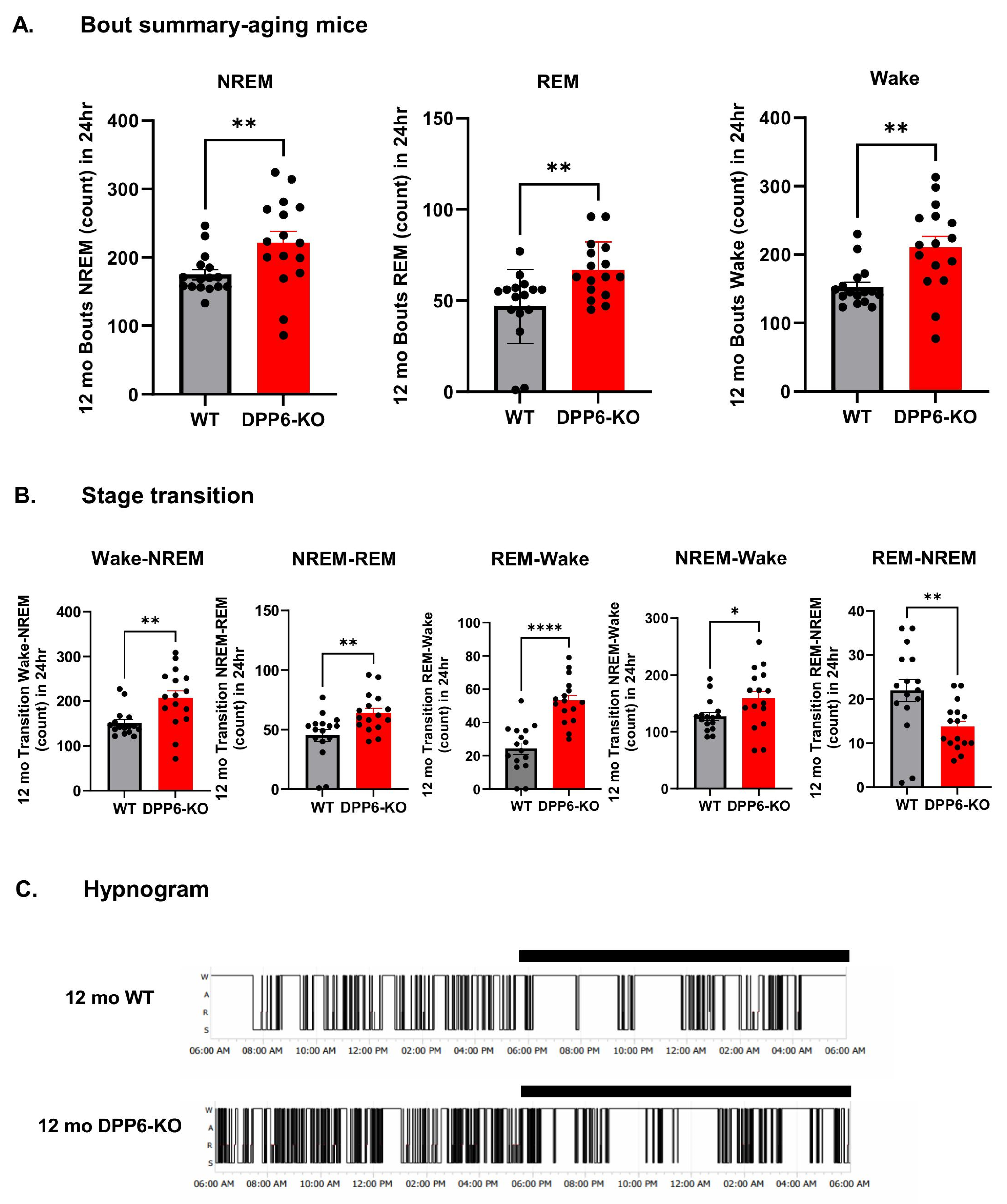 2.1. Aging DPP6-KO Mice Show Insomnia and Fragmented Sleep