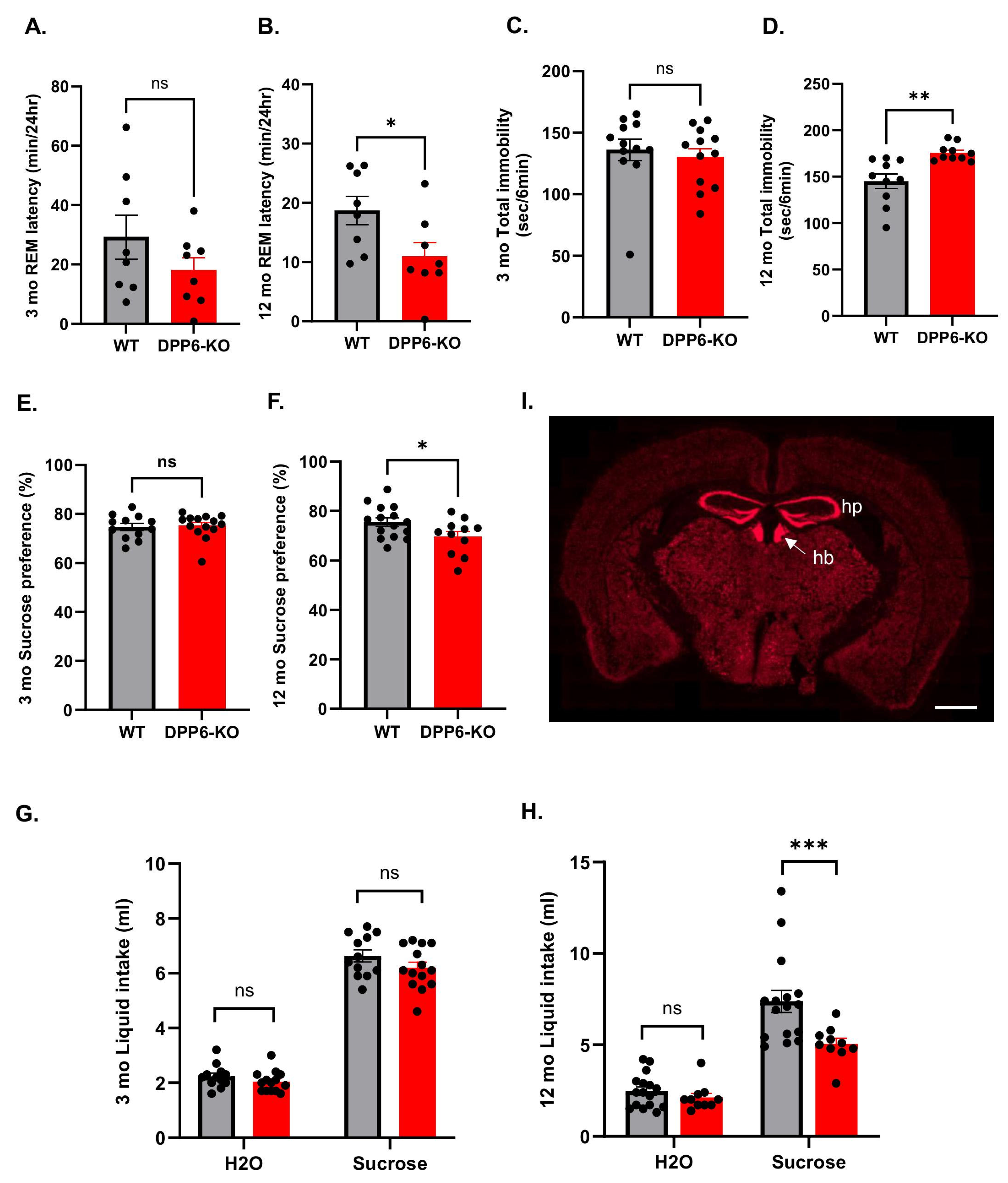 2.3. Aging DPP6-KO Mice Display Depressive Behavior Related to Increased REM Sleep