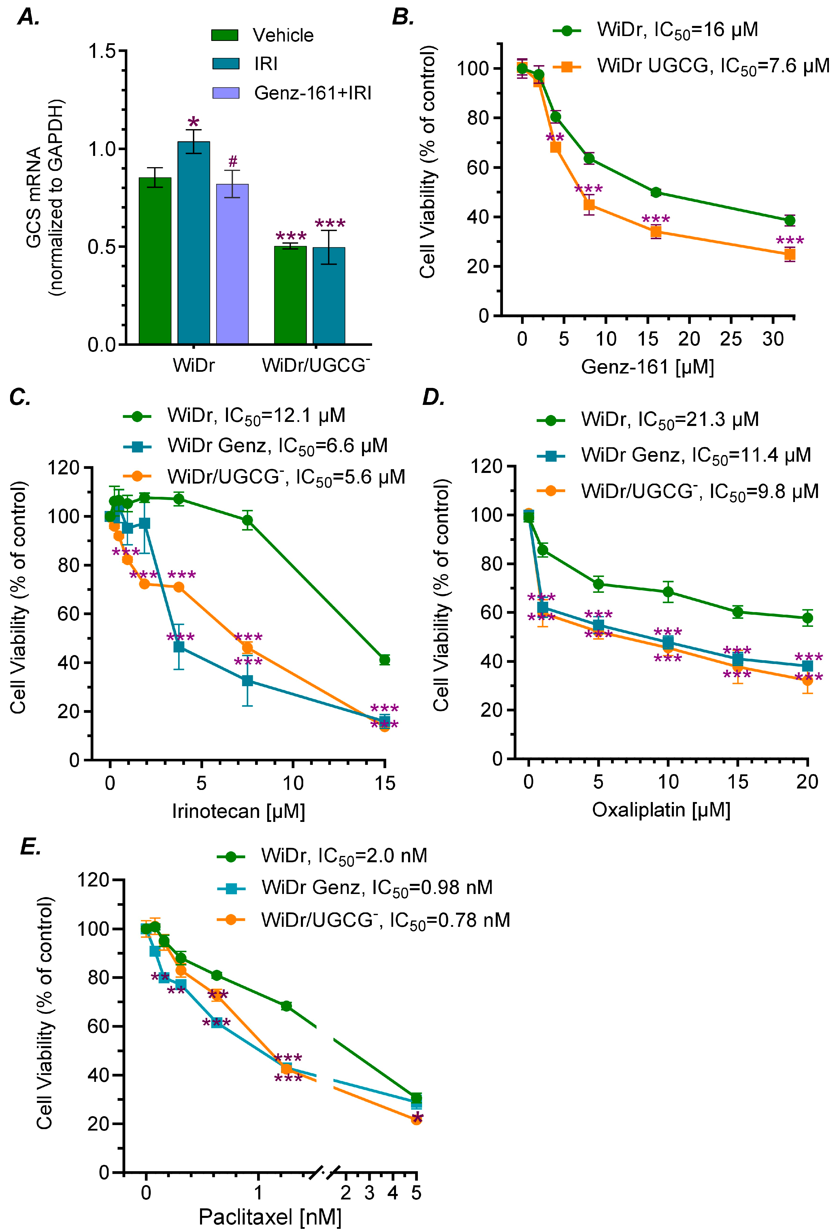 2.1. GCS Inhibition Reversed Drug Resistance and Reduced Tumorigenesis in p53 Mutant Cancer Cells
