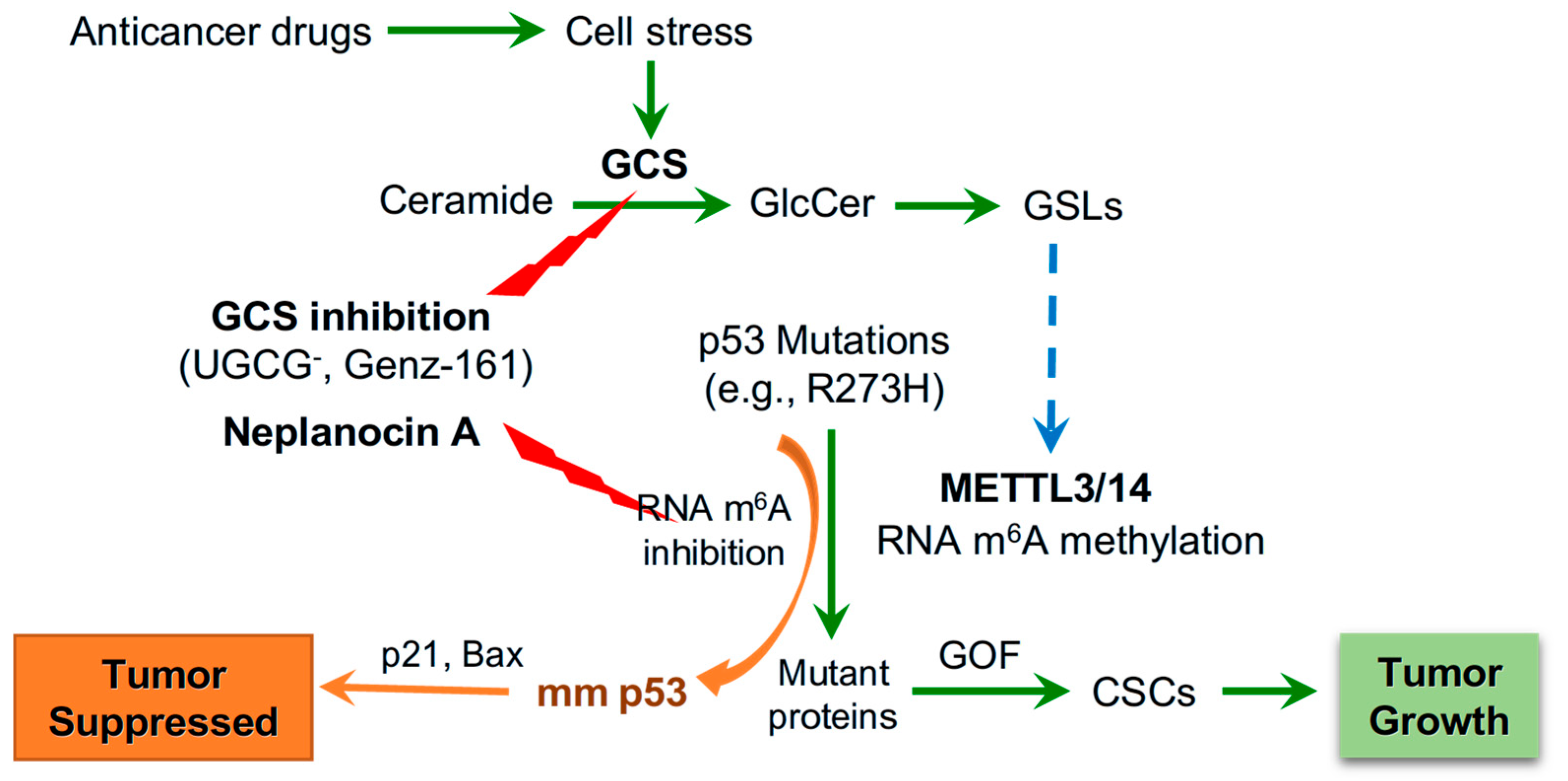 Mostaq MS, Amin MN, Raphael A, Asbury C, Gupta A, Gu X, Han X, Sekulic D, Michalak P, Kang L, et al. Suppression of Glucosylceramide Synthase Reverses Drug Resistance in Cancer Cells Harboring Homozygous p53 Mutants. International Journal of Molecular Sciences. 2026; 27(7):3237. https://doi.org/10.3390/ijms27073237