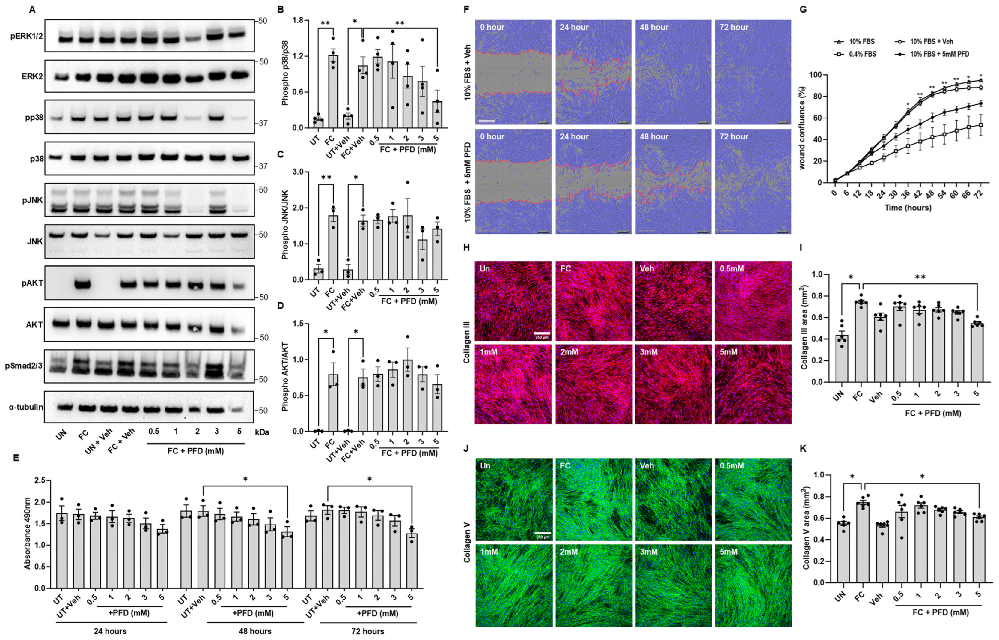 - Guo, X.; Yang, Y.; Liu, L.; Liu, X.; Xu, J.; Wu, K.; Yu, M. Pirfenidone induces G1 arrest in human Tenon’s fibroblasts in vitro involving AKT and MAPK signaling pathways. J. Ocul. Pharmacol. Ther. 2017, 33, 366–374. [Google Scholar] [CrossRef]