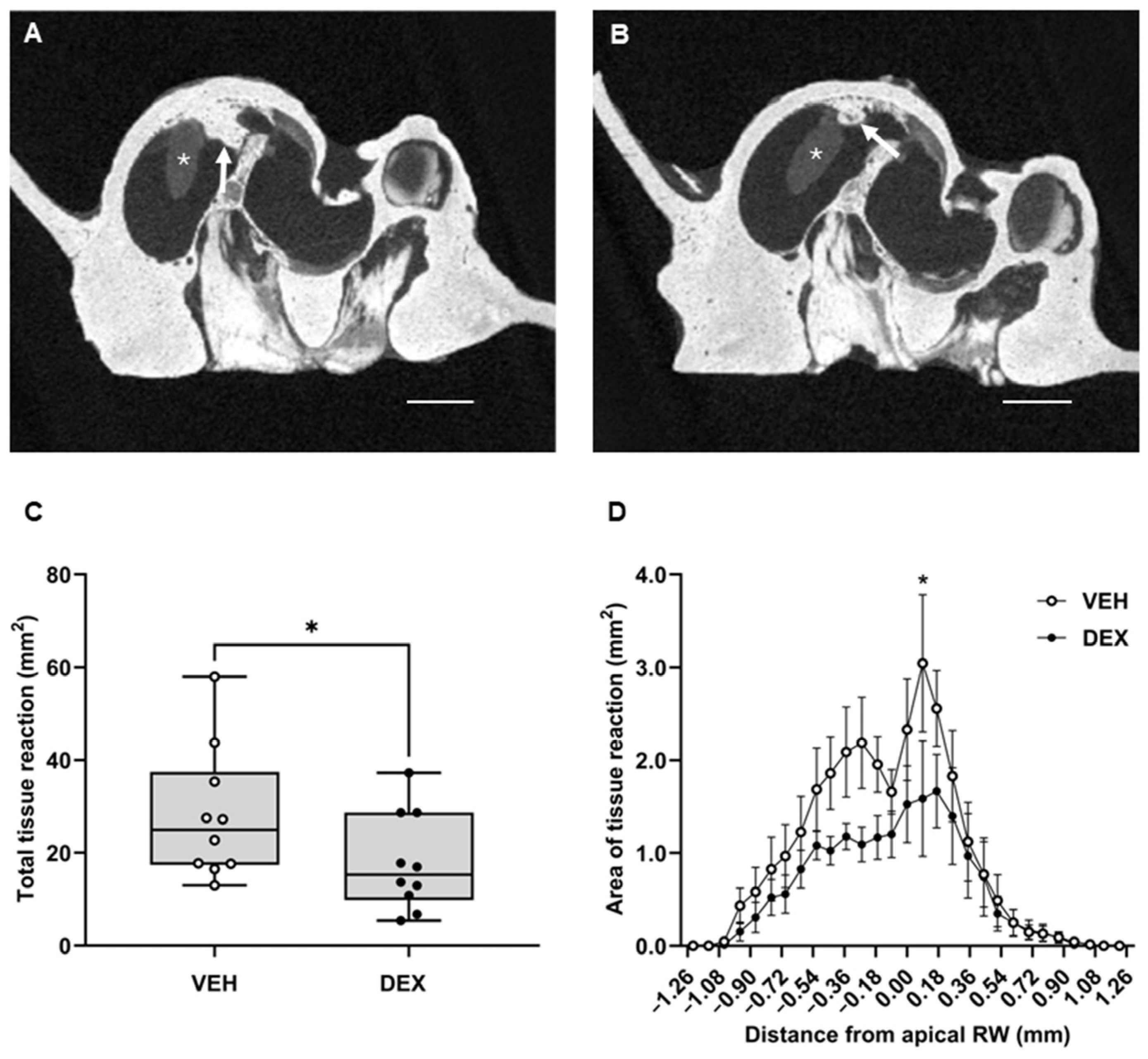 - Wang, X.; Fernandez, R.; Dellamary, L.; Harrop, A.; Ye, Q.; Lichter, J.; Lau, D.; LeBel, C.; Piu, F. Pharmacokinetics of dexamethasone solution following intratympanic injection in guinea pig and sheep. Audiol. Neurotol. 2011, 16, 233–241. [Google Scholar] [CrossRef]