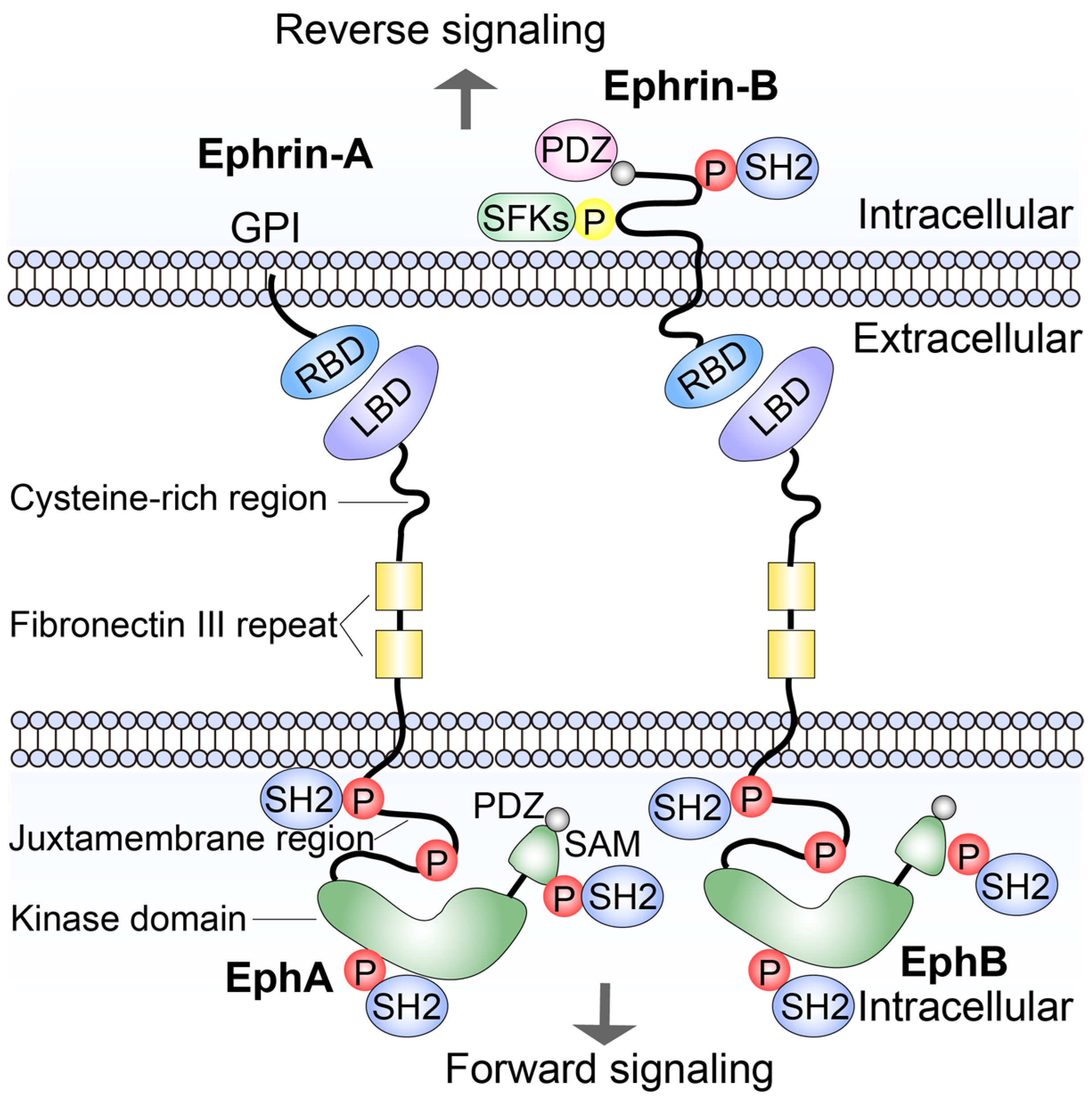 - Himanen, J.P.; Nikolov, D.B. Eph receptors and ephrins. Int. J. Biochem. Cell Biol. 2003, 35, 130–134. [Google Scholar] [CrossRef]