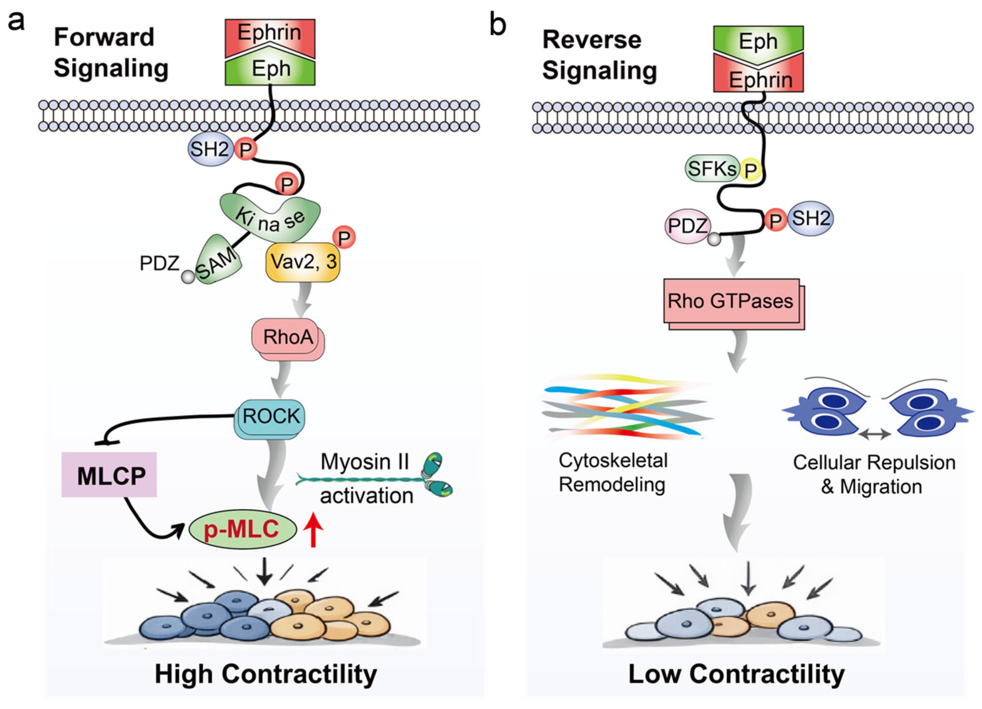 6.1. Relative Contributions of Forward and Reverse Eph/Ephrin Signaling to Contractility Regulation
