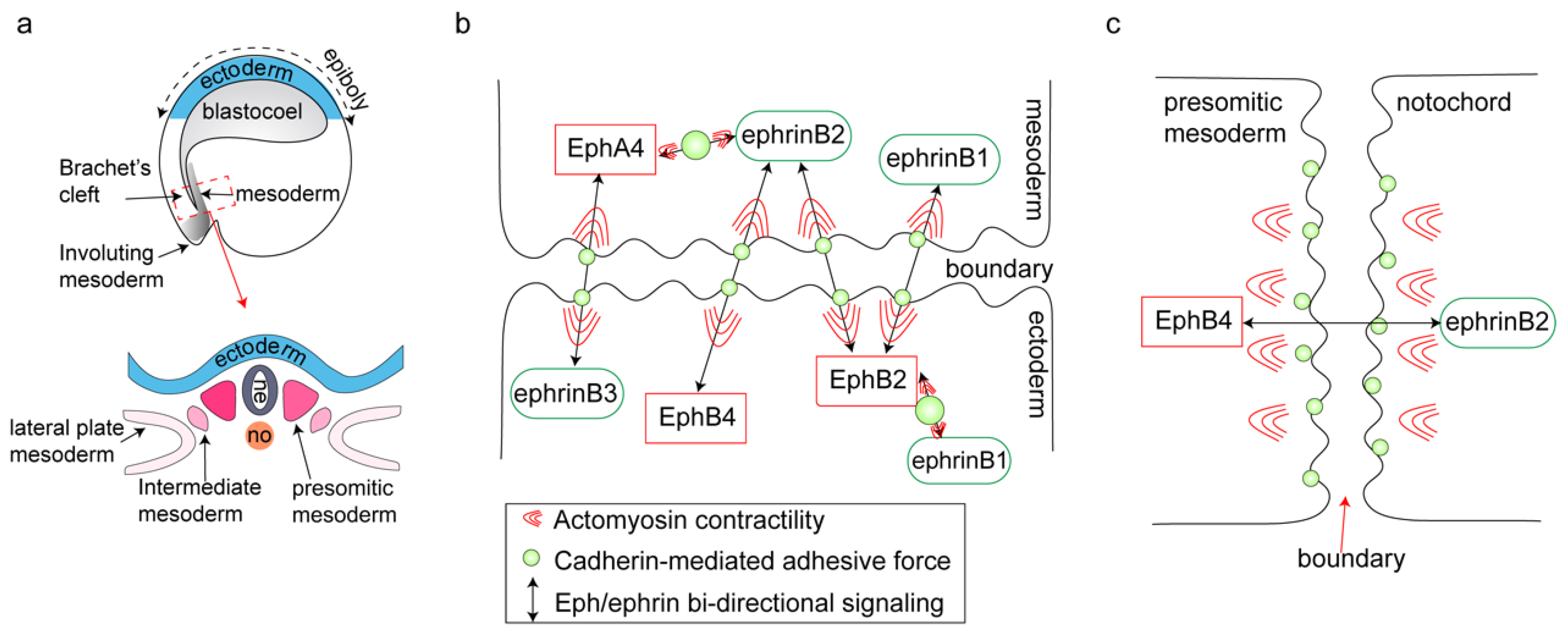 - Barua, D.; Winklbauer, R. Eph/ephrin signaling controls cell contacts and formation of a structurally asymmetrical tissue boundary in the Xenopus gastrula. Dev. Biol. 2022, 490, 73–85. [Google Scholar] [CrossRef] [PubMed]