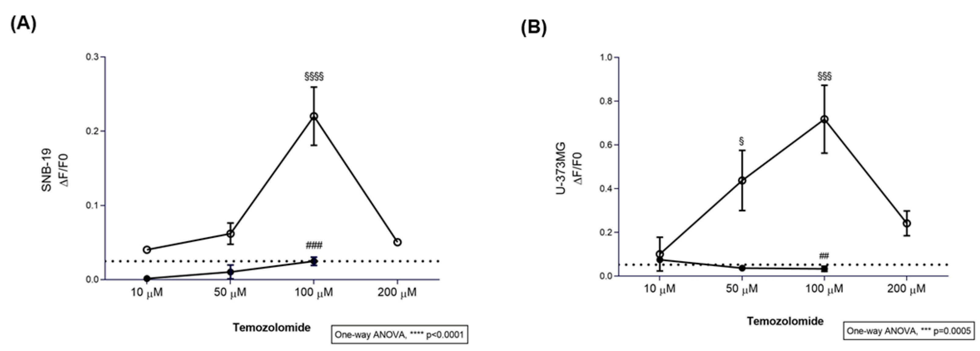 4.3.1. Effects of TMZ in Intracellular Ca2+ Responses of Glioblastoma Cells