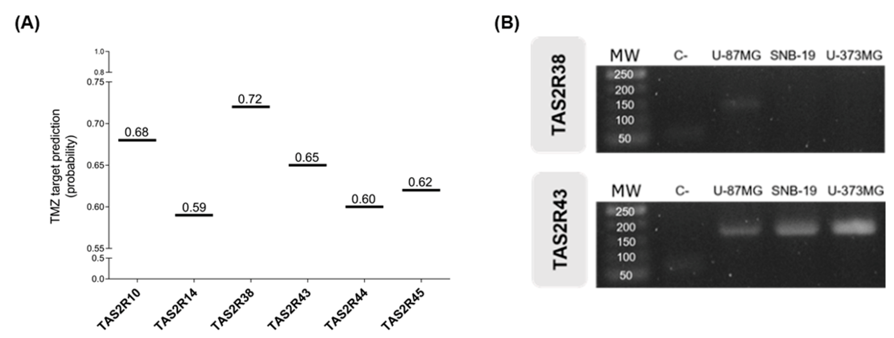 4.4. Identification of the TMZ Target TAS2R on Glioblastoma Cells