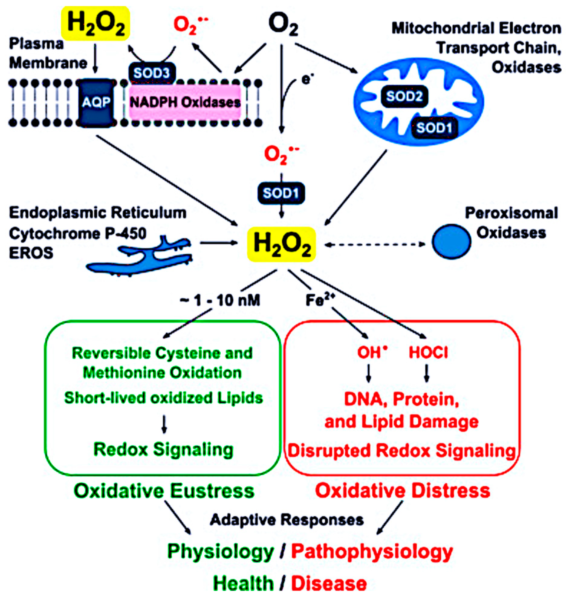 - Sies, H. Hydrogen peroxide as a central redox signaling molecule in physiological oxidative stress: Oxidative eustress. Redox Biol. 2017, 11, 613–619. [Google Scholar] [CrossRef]