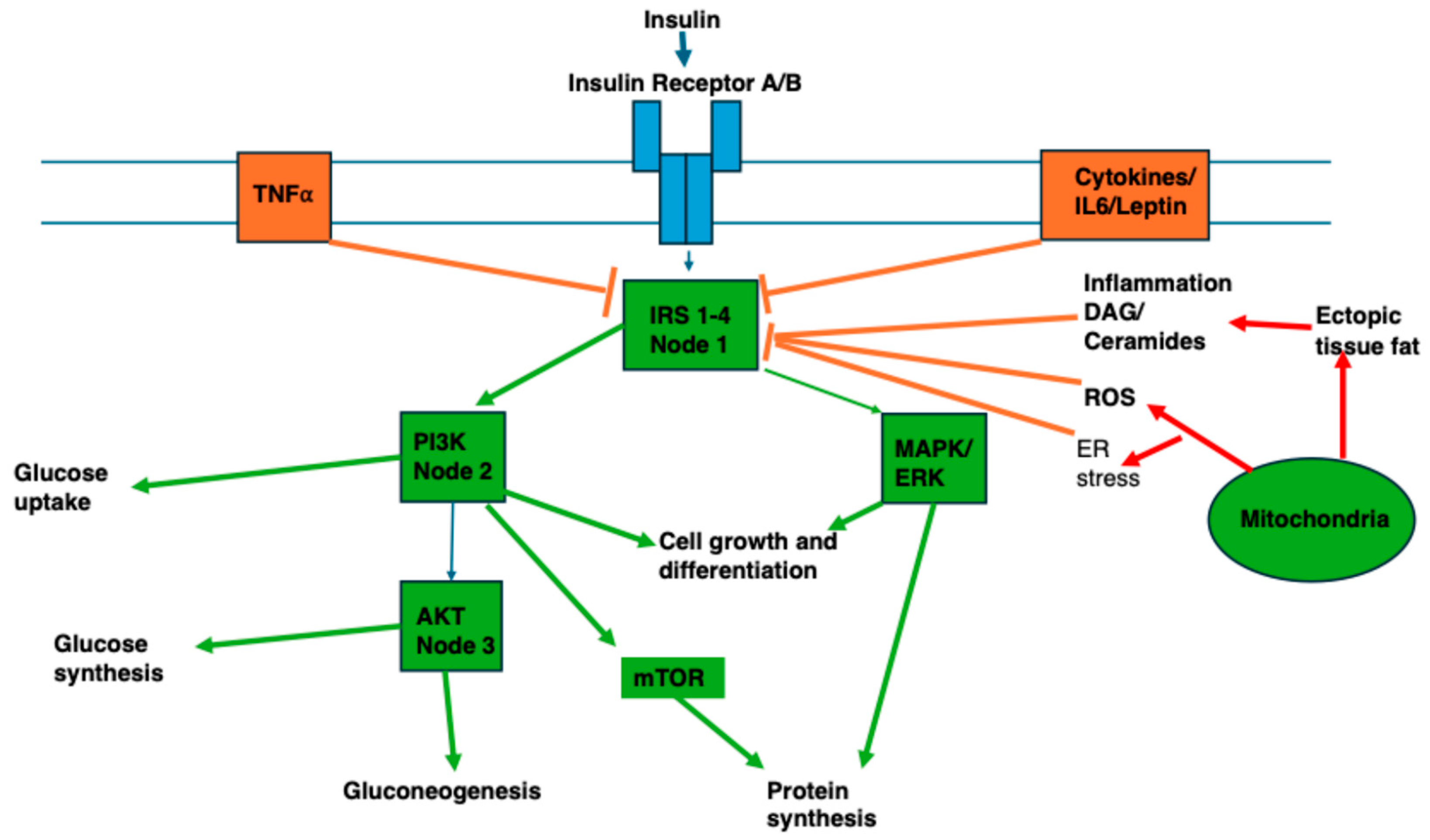 - Norton, L. The Insulin Signalling Pathway; AntibodiesCom: Cambridge, UK, 2020; Available online: https://www.antibodies.com/resources/insulin-signaling-pathway (accessed on 23 January 2026).