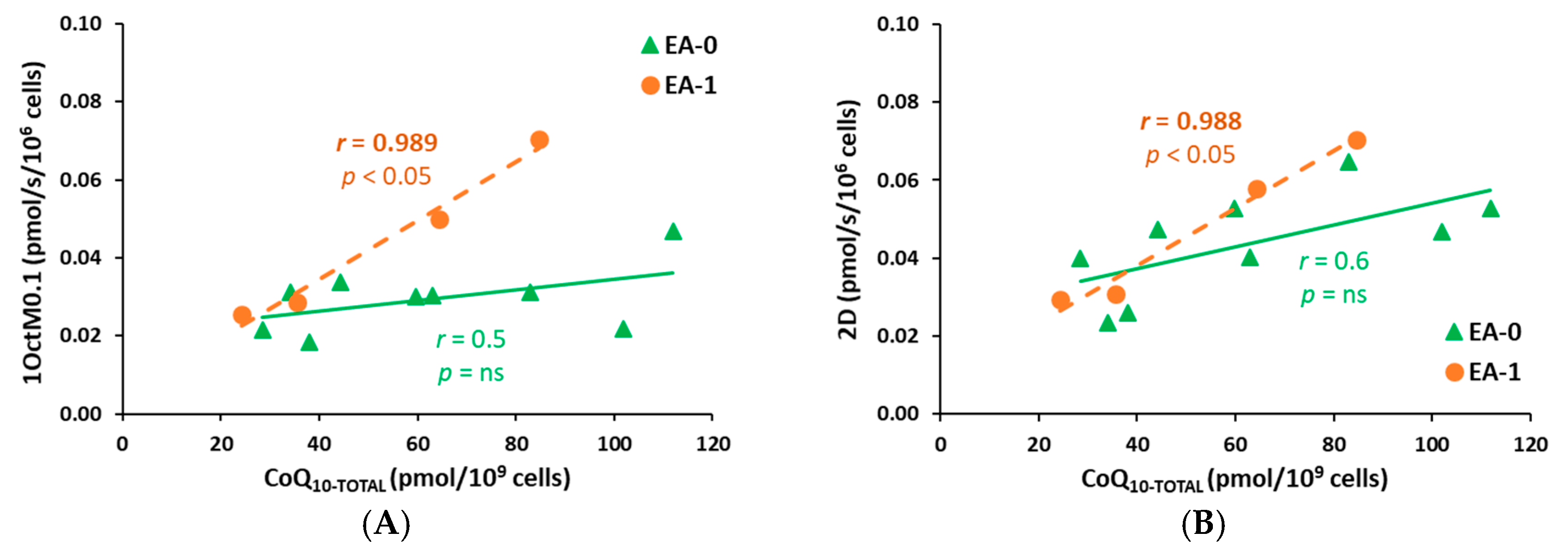 2.8. The Correlations Between Platelet Concentration of CoQ10 and Respiratory Parameters of RP1 and RP2 in Patients with Ebstein Anomaly: EA-0, EA-1 Groups