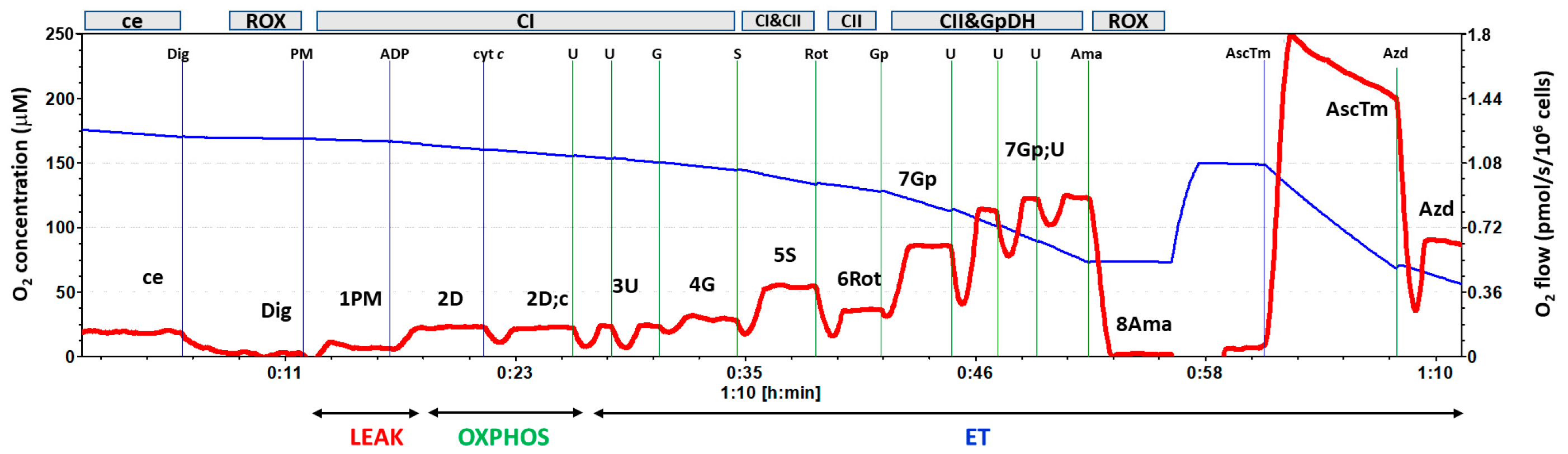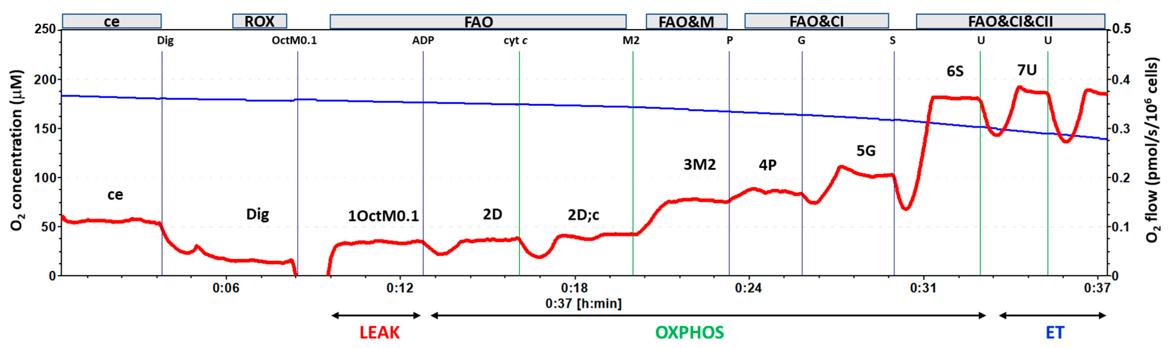 - Timón-Gómez, A.; Doerrier, C.; Sumbalová, Z.; Garcia-Souza, L.F.; Baglivo, E.; Cardoso, L.H.D.; Gnaiger, E. Bioenergetic profiles and respiratory control in mitochondrial physiology: Precision analysis of oxidative phosphorylation. Exp. Physiol. 2026, 111, 179–211. [Google Scholar] [CrossRef] [PubMed]