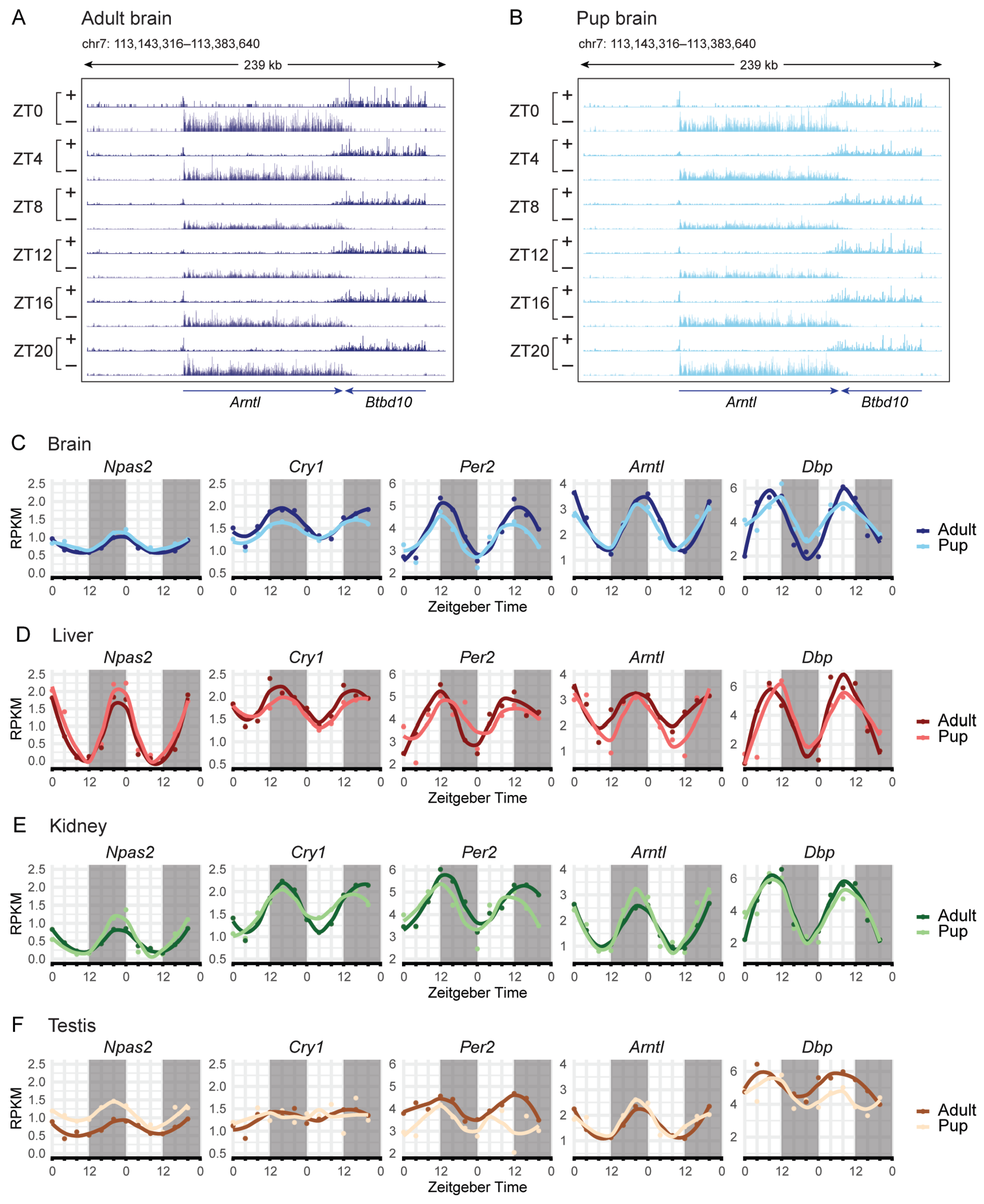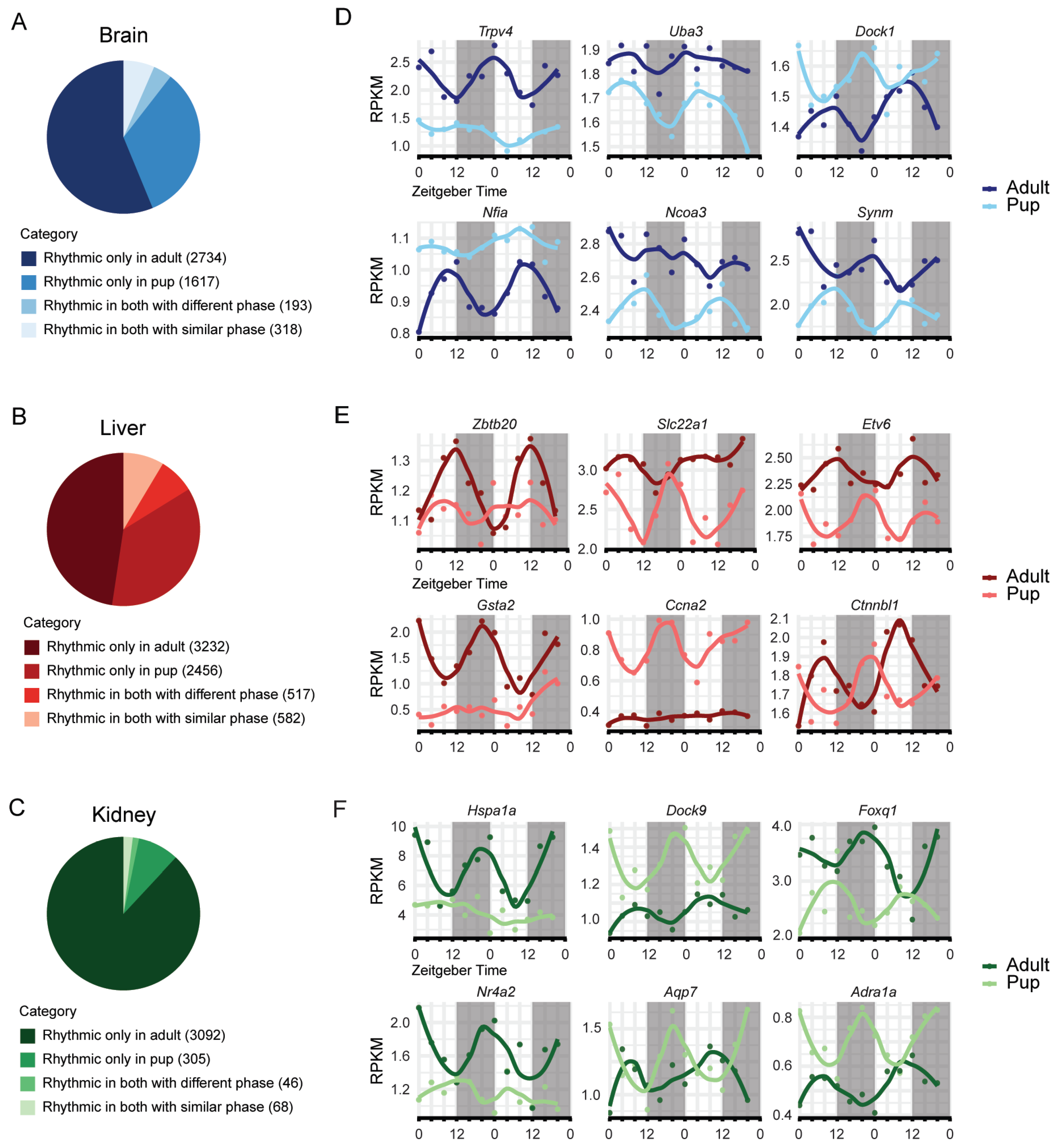 2.4. Organ-Specific Rhythmicity of Clock-Controlled Genes Differs Between Pups and Adults