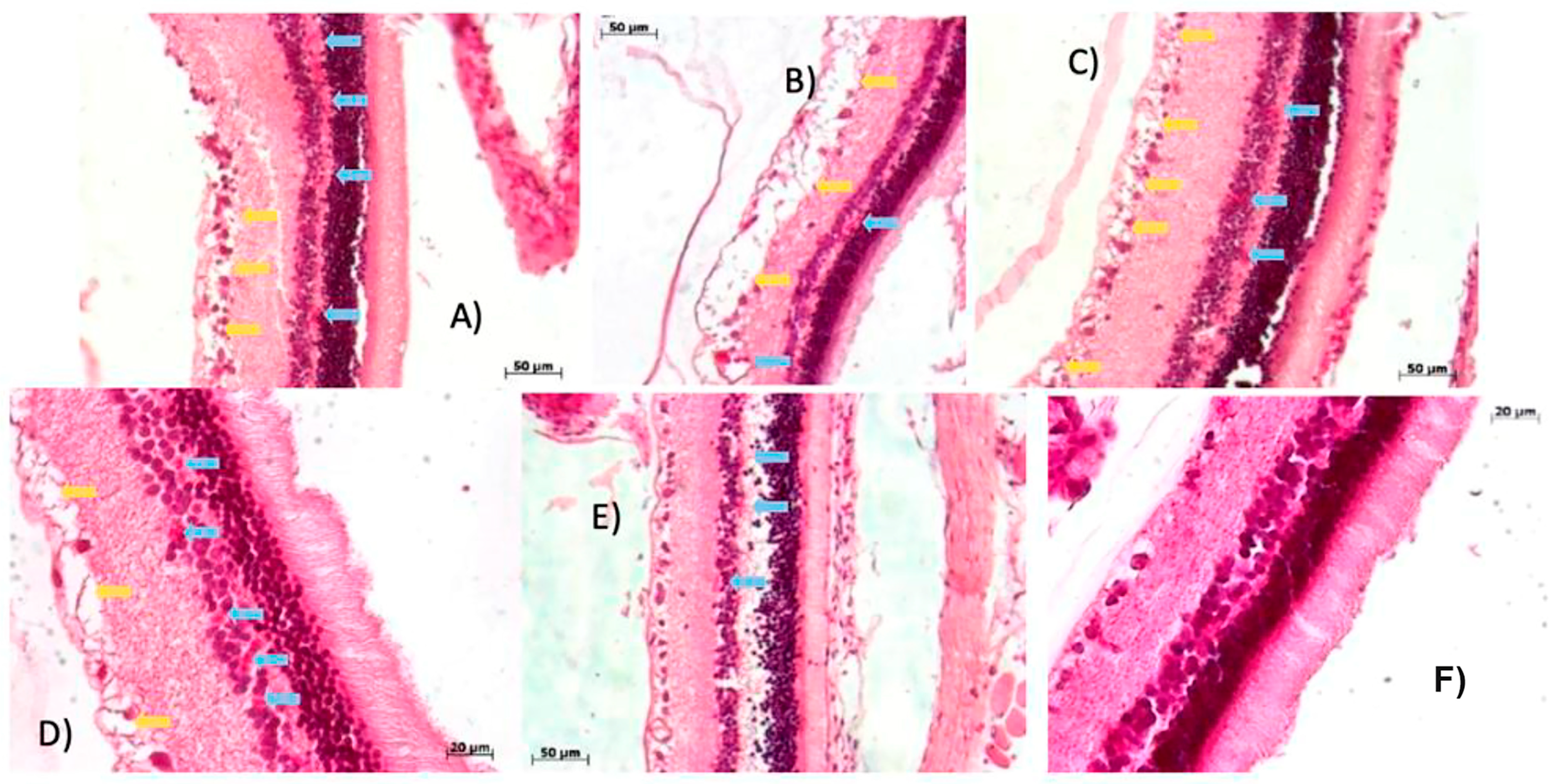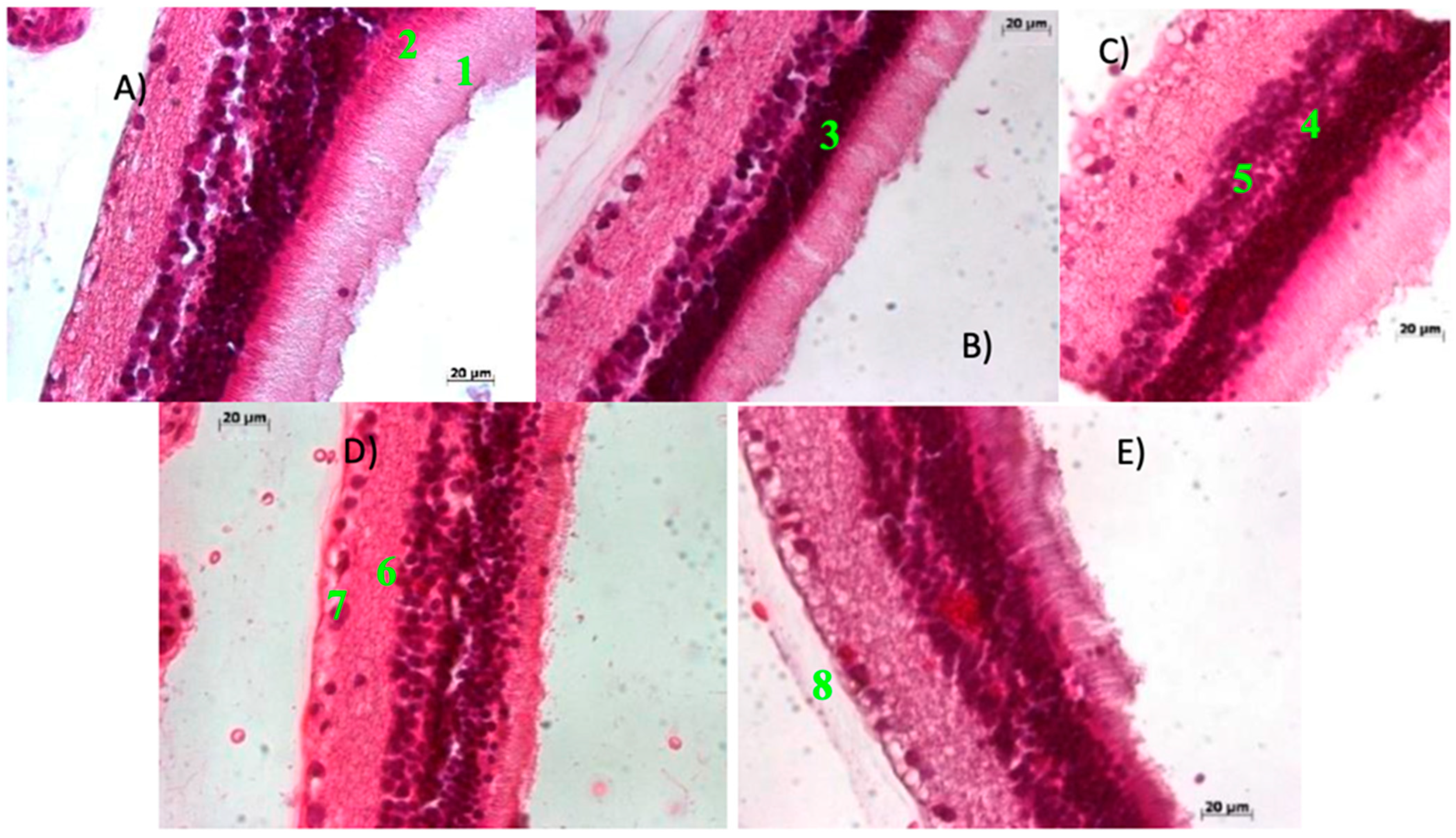 2.2.1. Preserved Retinal Architecture in Control Rats Confirms Baseline Histological Integrity