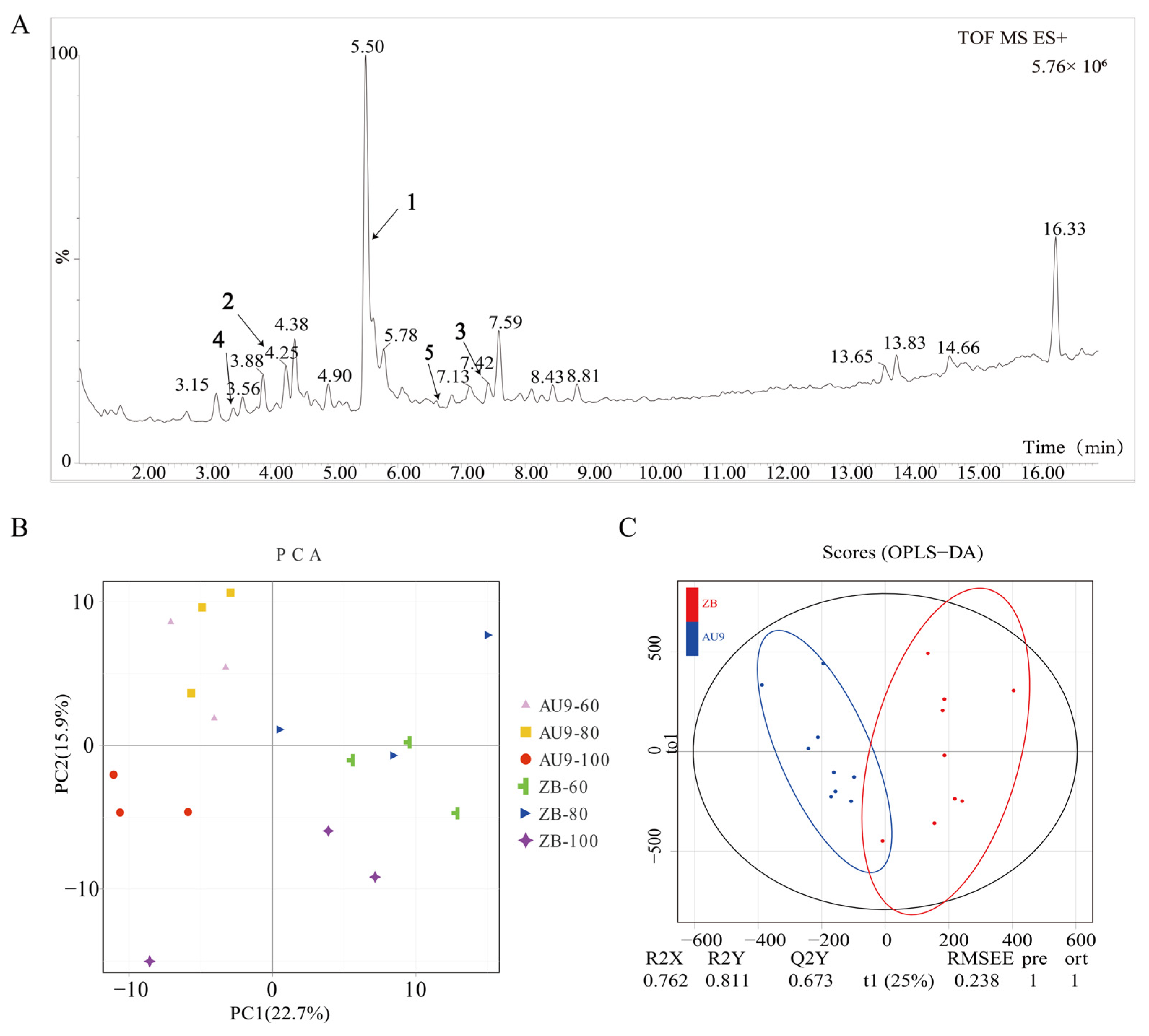 4.2. Non-Targeted Metabolome Analysis