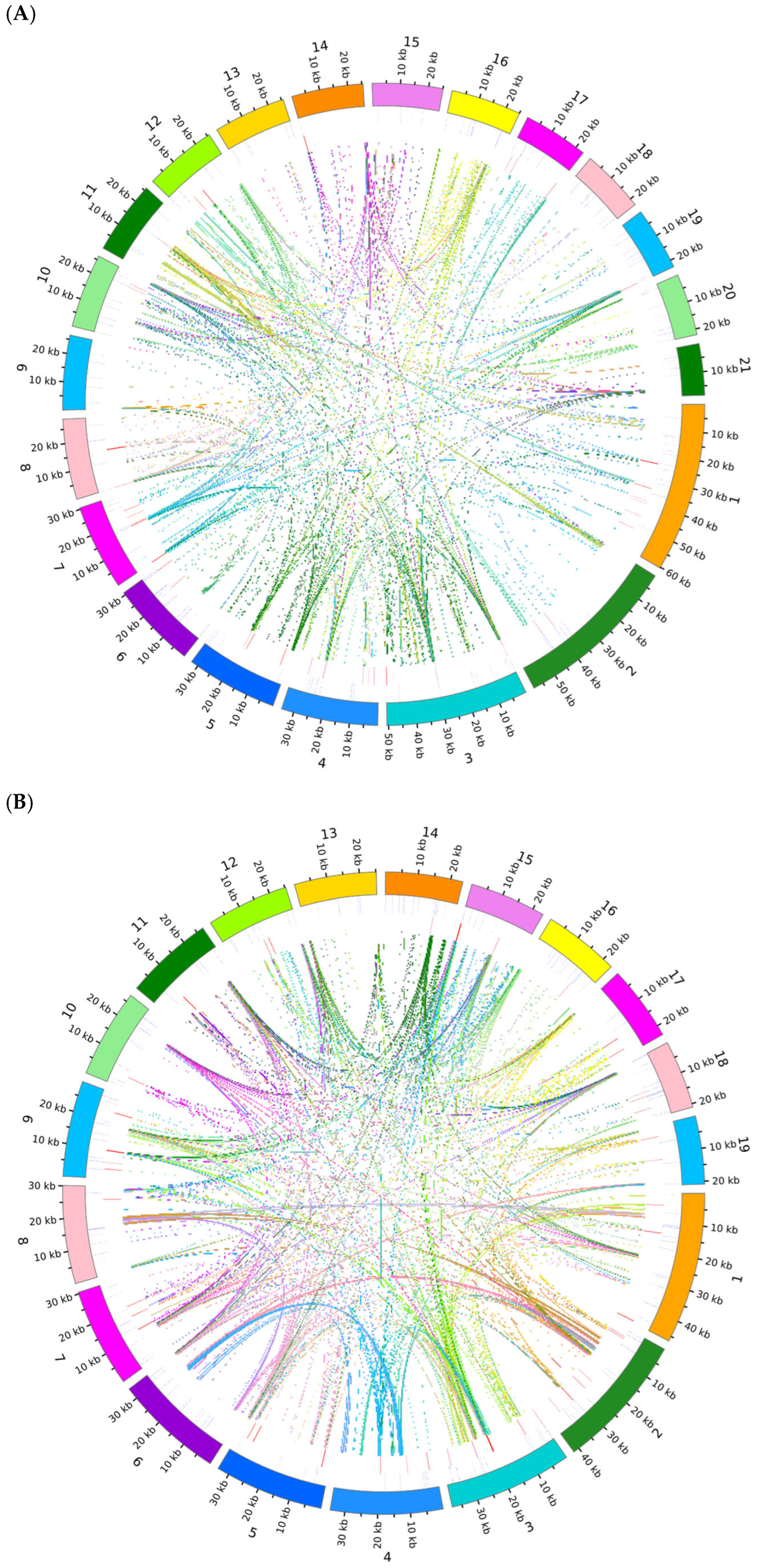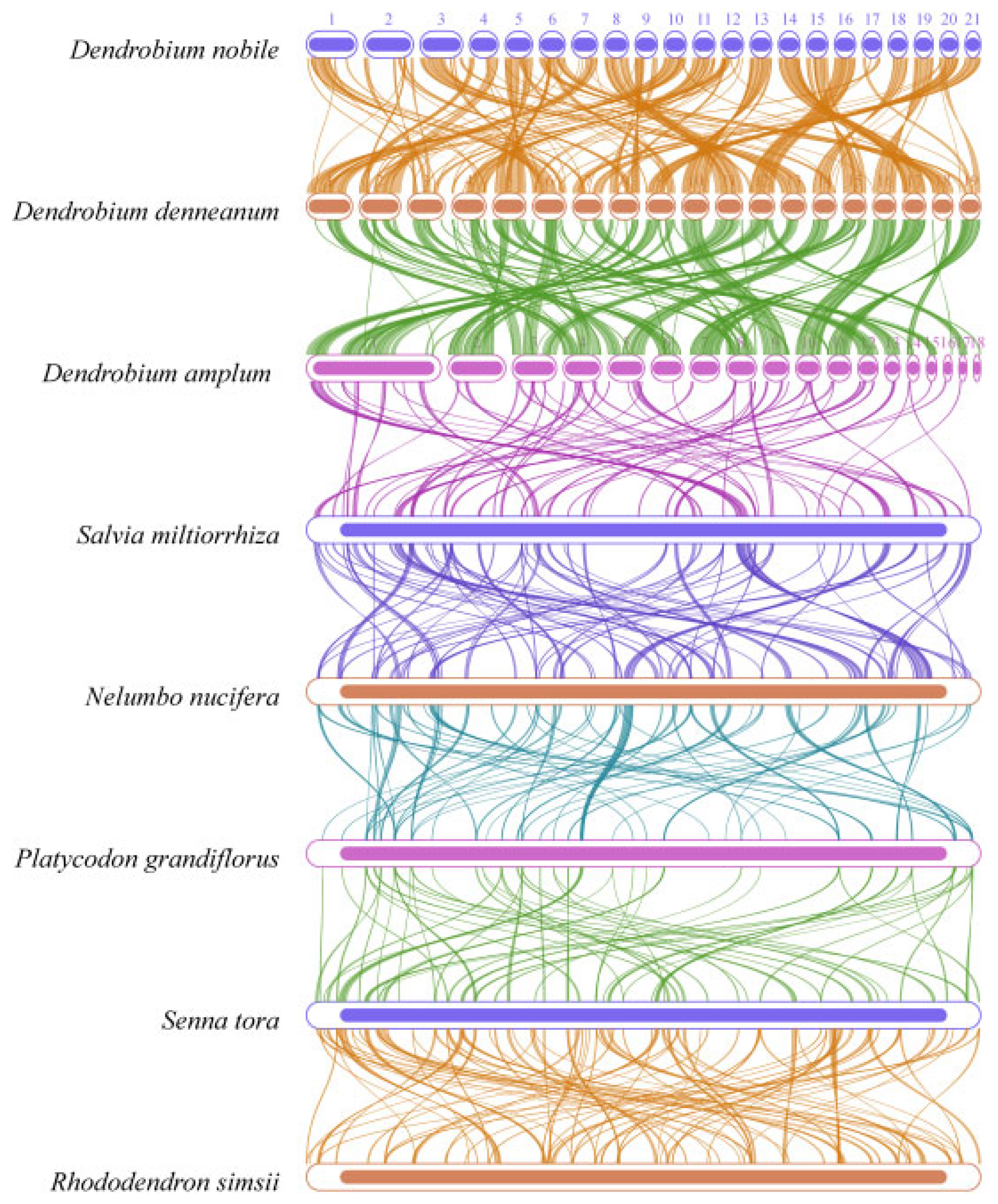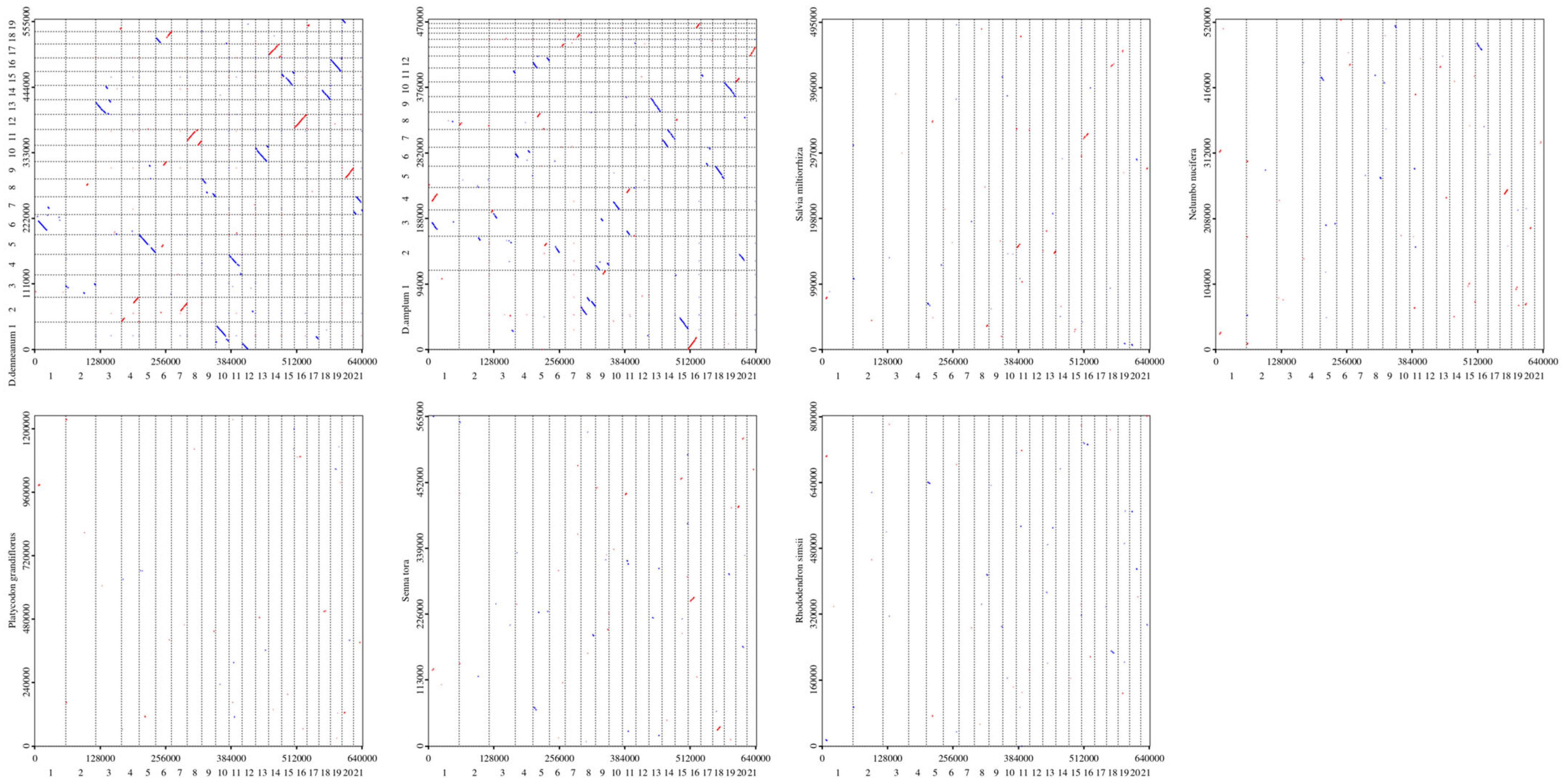 2.7. Synteny Analysis of D. nobile Lindl. and D. denneanum Kerr.