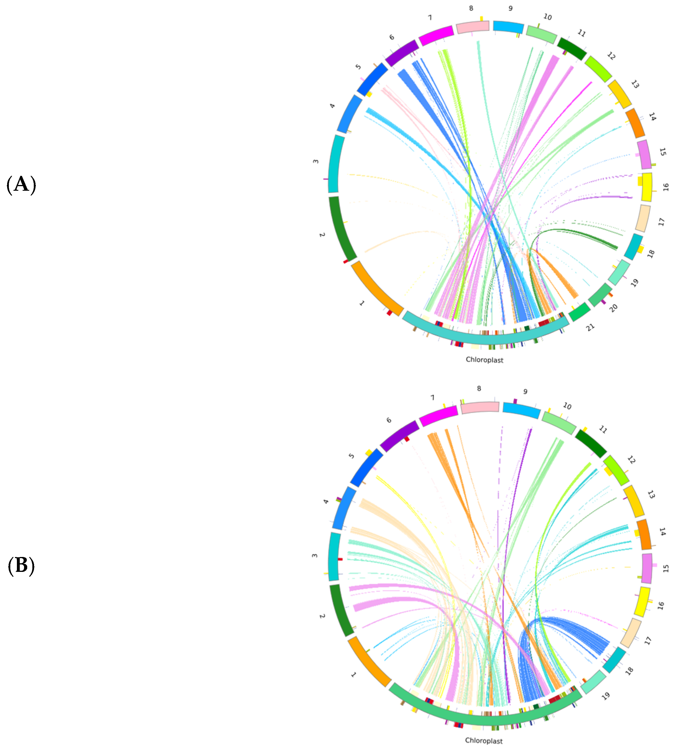 4.8. Homologous Sequences Between Mitochondrial and Chloroplast Genome