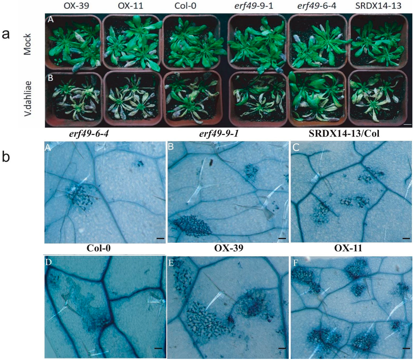 2.1. AtERF49 Increases Plant Susceptibility to Verticillium dahliae