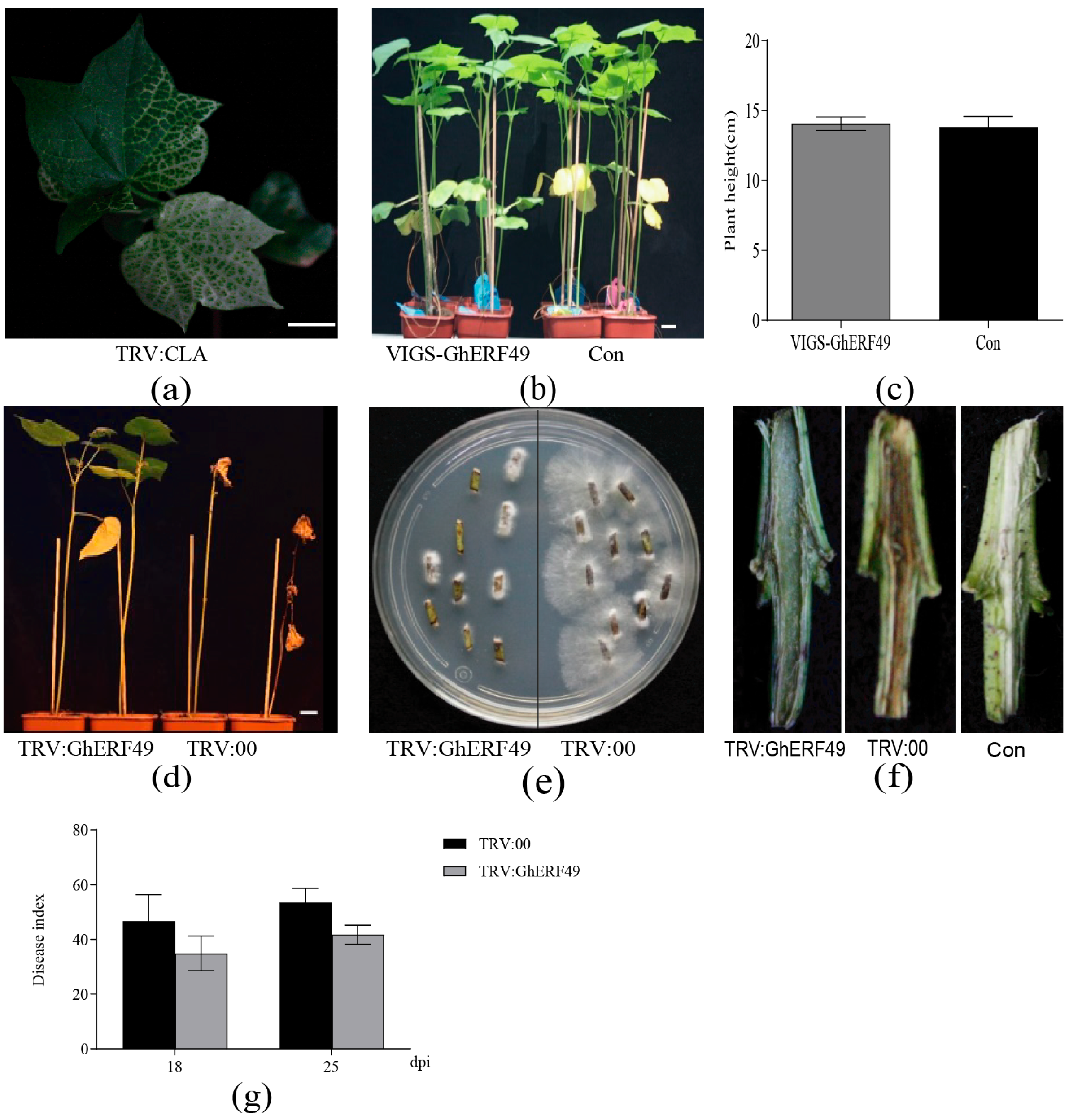 2.2. Silencing GhERF49 Enhances Resistance to Verticillium Wilt in Cotton