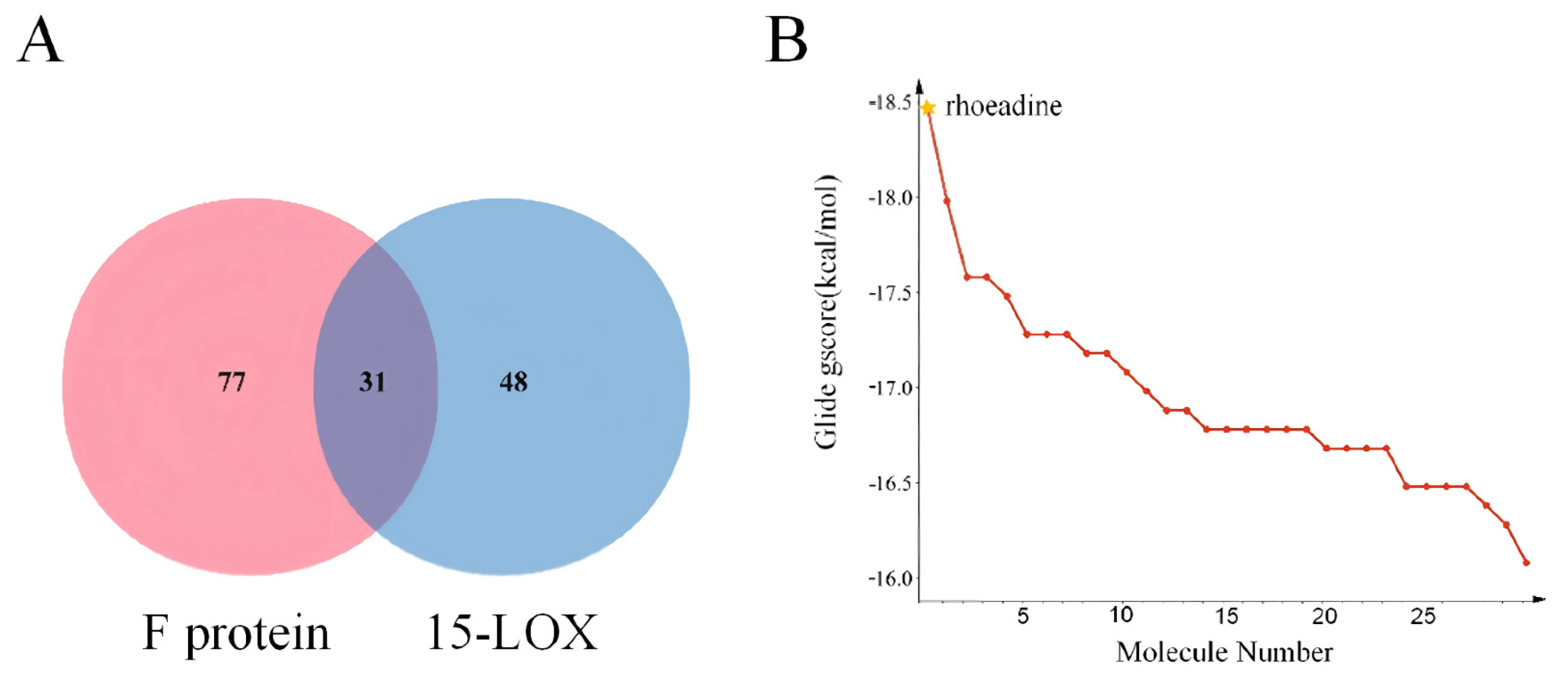 APA StyleZhou, X., Du, H., Wang, C., Zhang, M., Ding, X., Wang, Y., Fan, Z., & Wang, P. (2026). Identification of a Potential Dual-Target Candidate Against RSV F Protein and 15-LOX from TCMSP: Integrating Virtual Screening, Molecular Dynamics, and Experimental Evaluation. International Journal of Molecular Sciences, 27(8), 3448. https://doi.org/10.3390/ijms27083448
