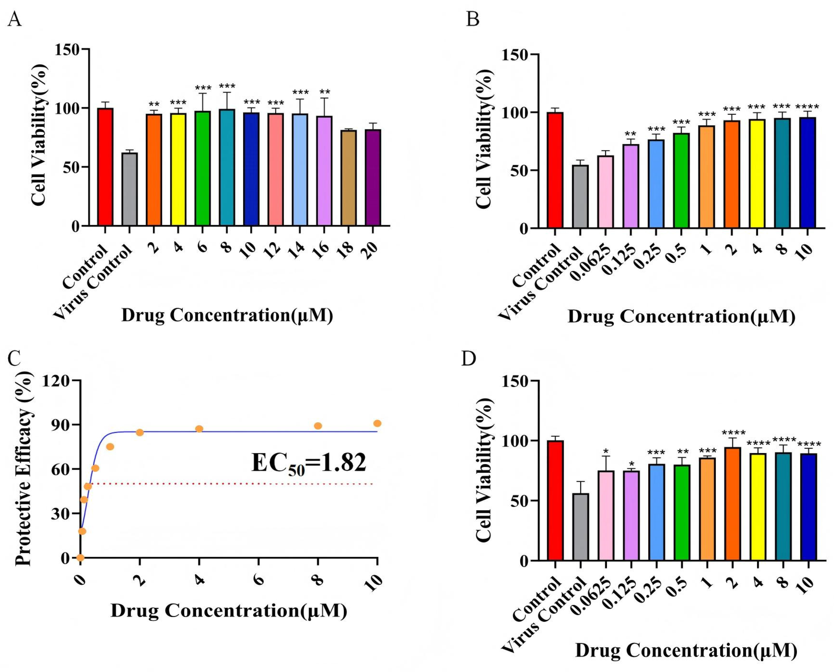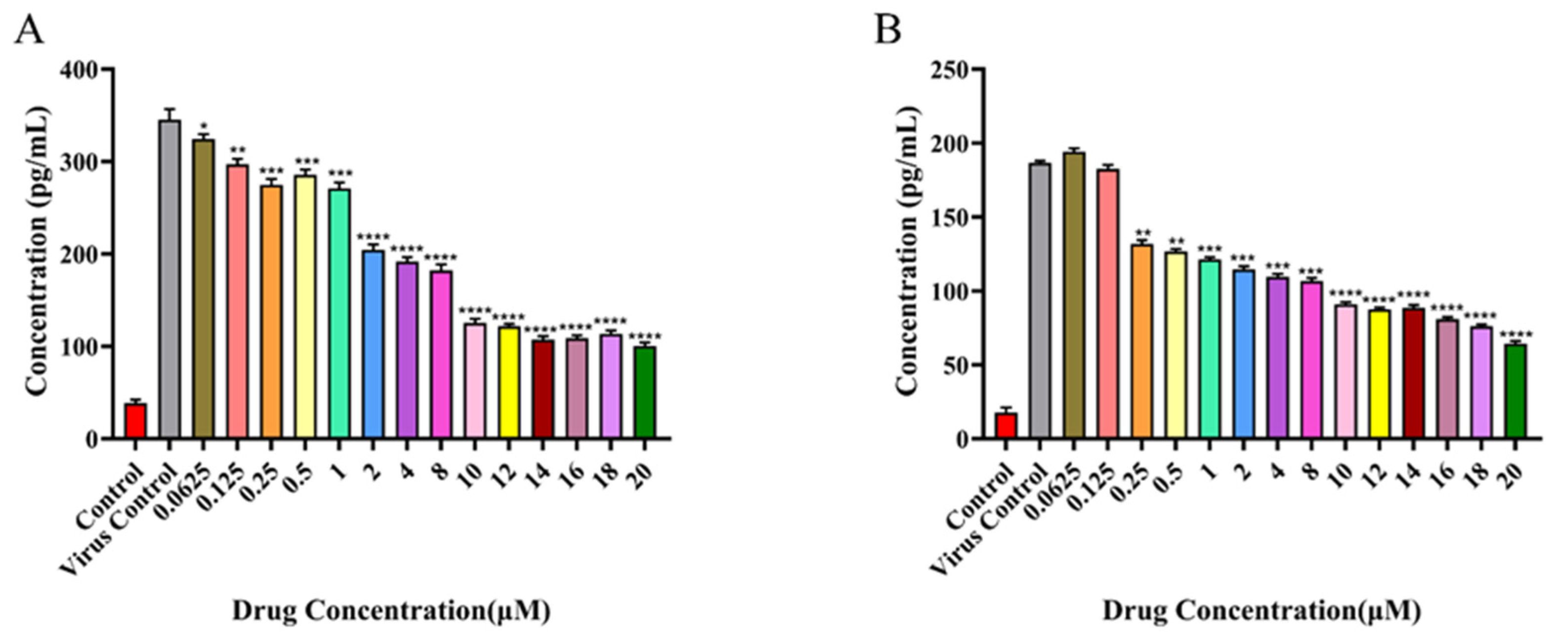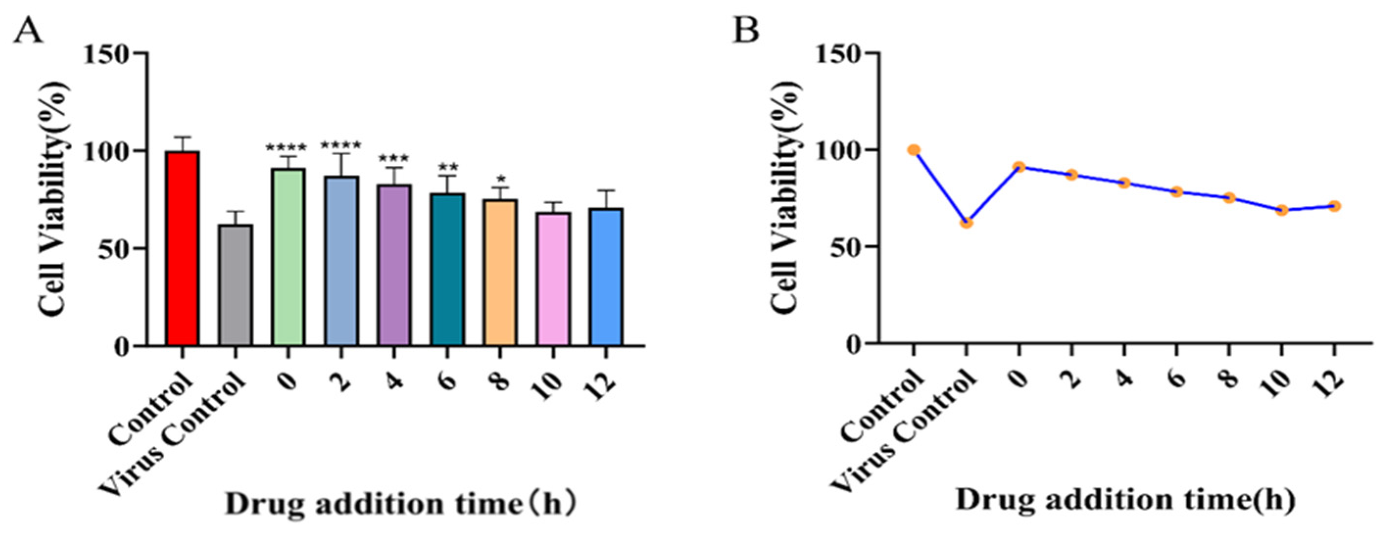 2.8. Half-Maximal Effective Concentration and Selectivity Index