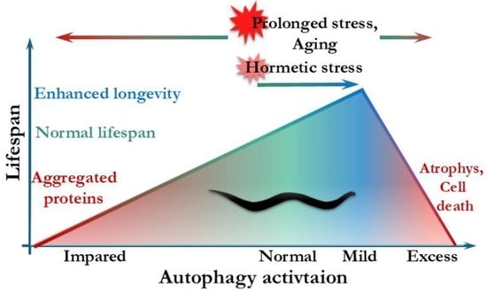- Hars, E.S.; Qi, H.; Ryazanov, A.G.; Jin, S.; Cai, L.; Hu, C.; Liu, L.F. Autophagy regulates ageing in C. elegans. Autophagy 2007, 3, 93–95. [Google Scholar] [CrossRef]
