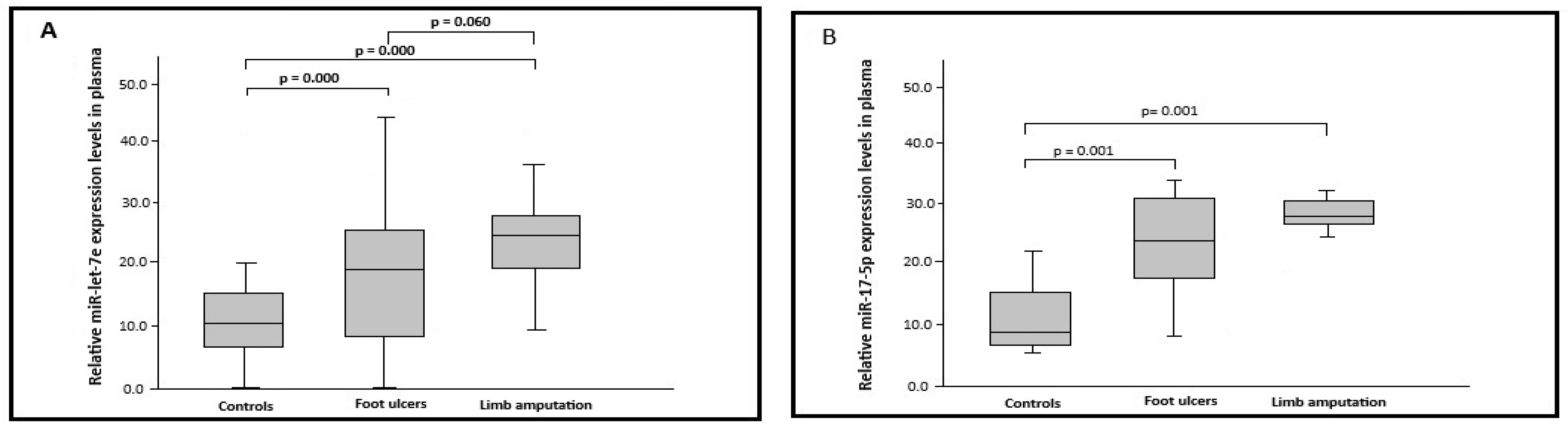 APA StyleGamboa, R., Sámano, R., Peña-Peña, M., Castrejon-Téllez, V., Chávez-Nava, A. P., Aguilar-Martínez, G., & Huesca-Gómez, C. (2026). Analysis of Circulating MicroRNAs in Patients with Diabetic Foot Ulcers and Lower Limb Amputation. International Journal of Molecular Sciences, 27(8), 3516. https://doi.org/10.3390/ijms27083516