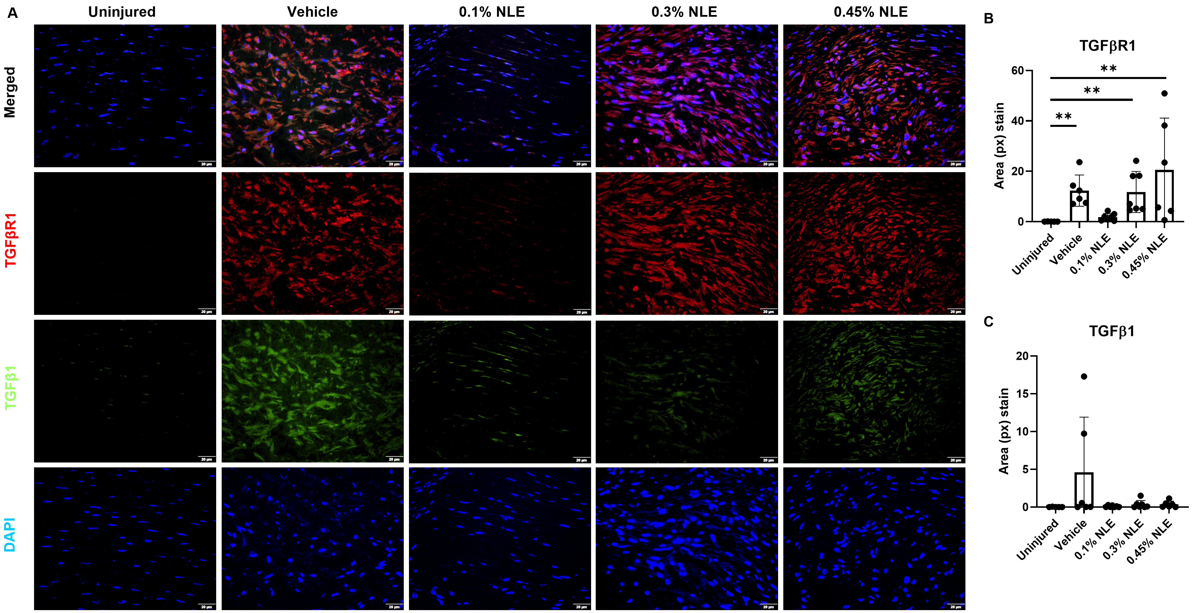 4.10. Immunofluorescence Staining of TGFβ1 and TGFβR1