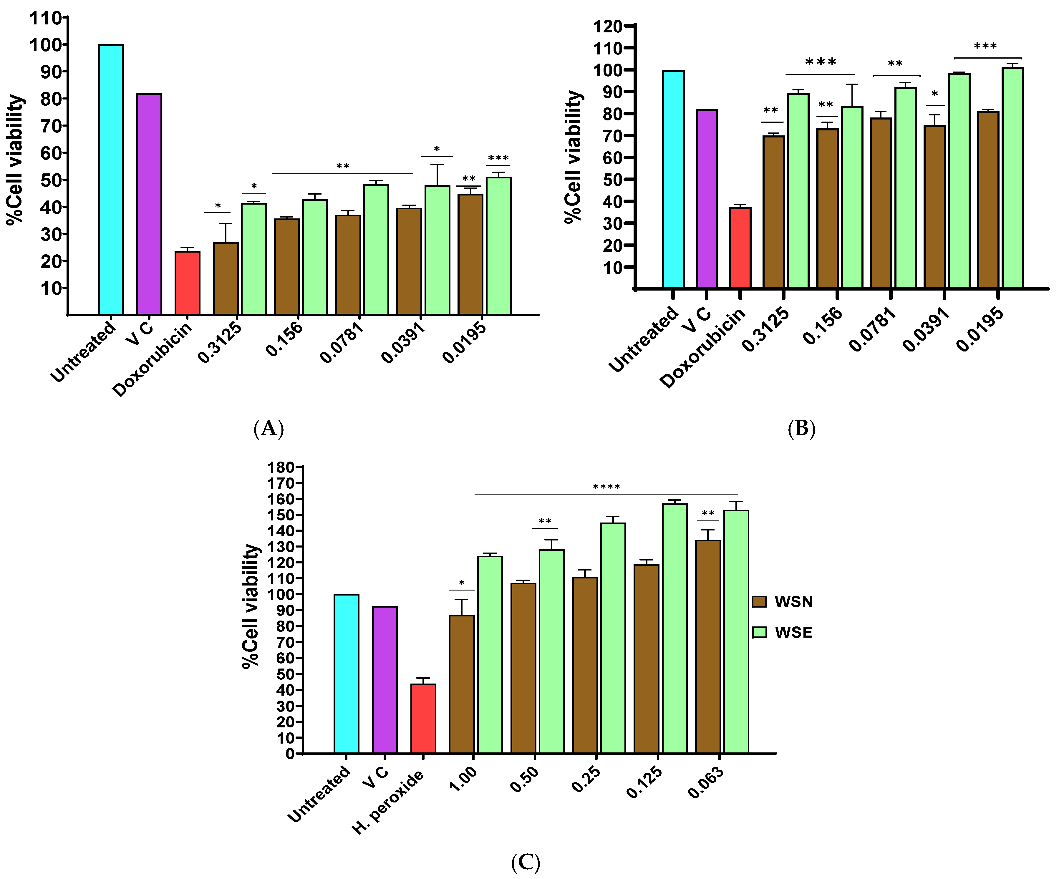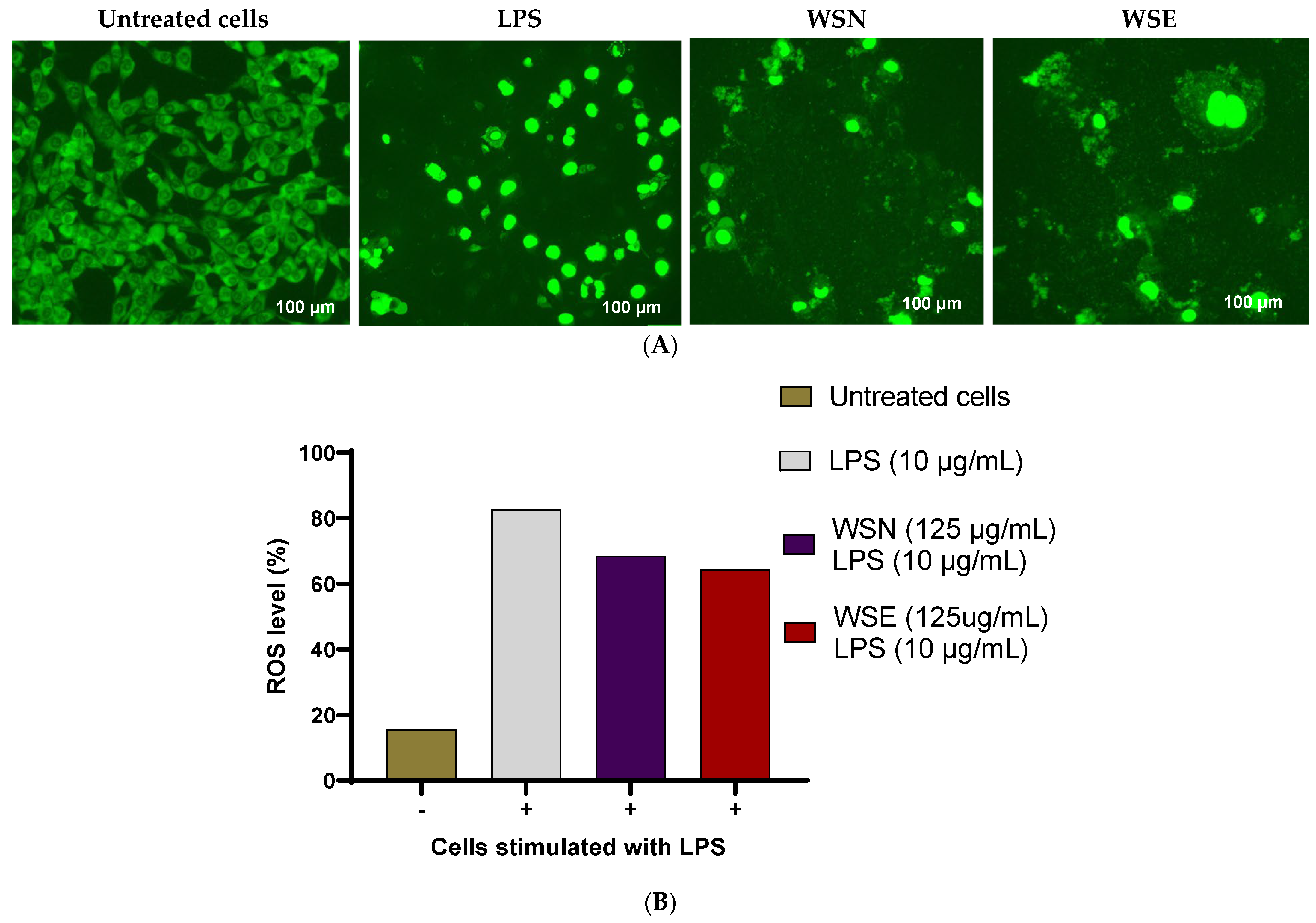 2.10. The Effect of WSN and WSE Crude Leaf Extract on ROS Production Measured with H2DCF-DA (ROS Probe)