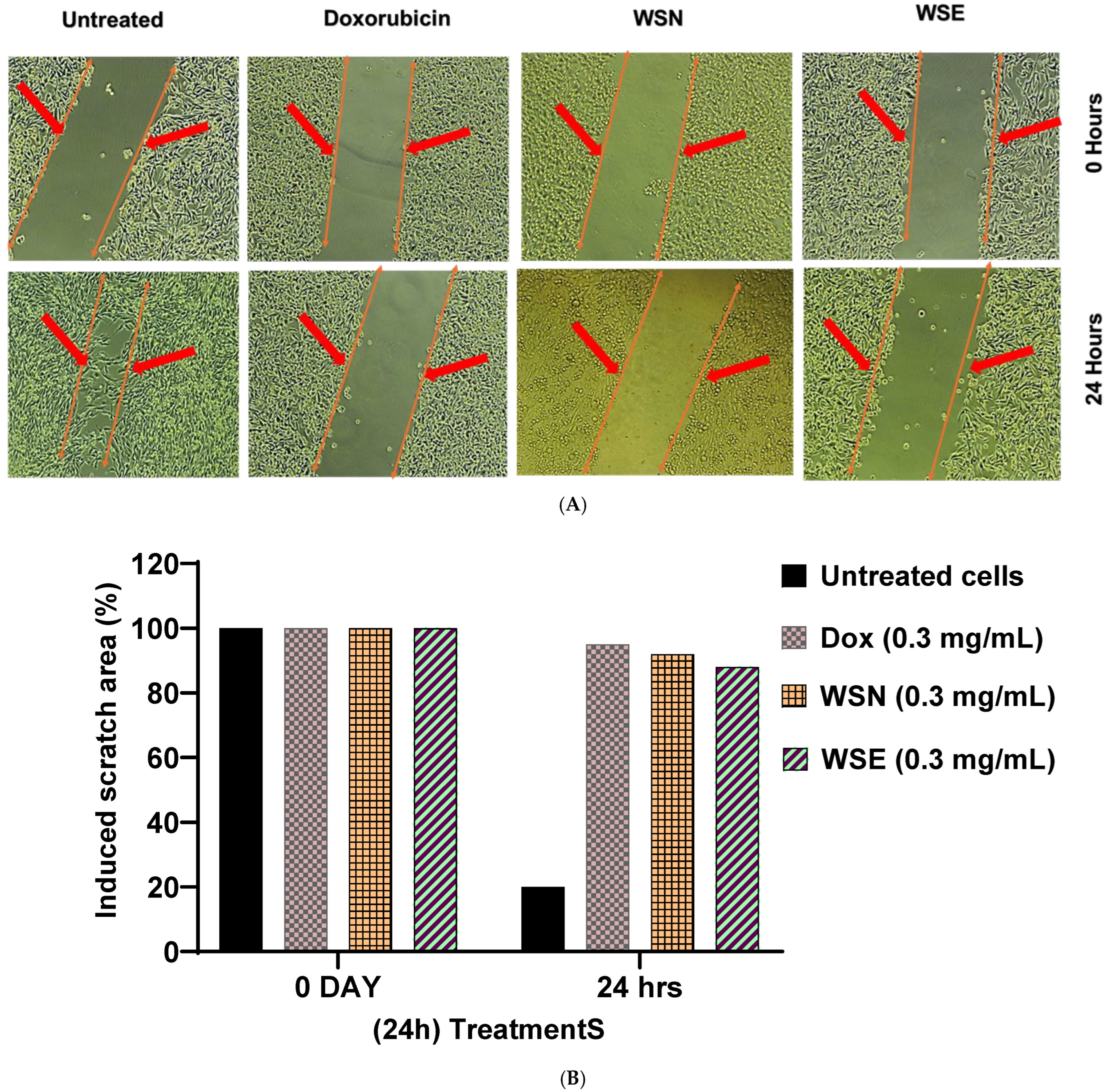 2.5. Anti-Metastatic Effect on MCF-7 Cells Treated with WSN and WSE Leaf Extracts