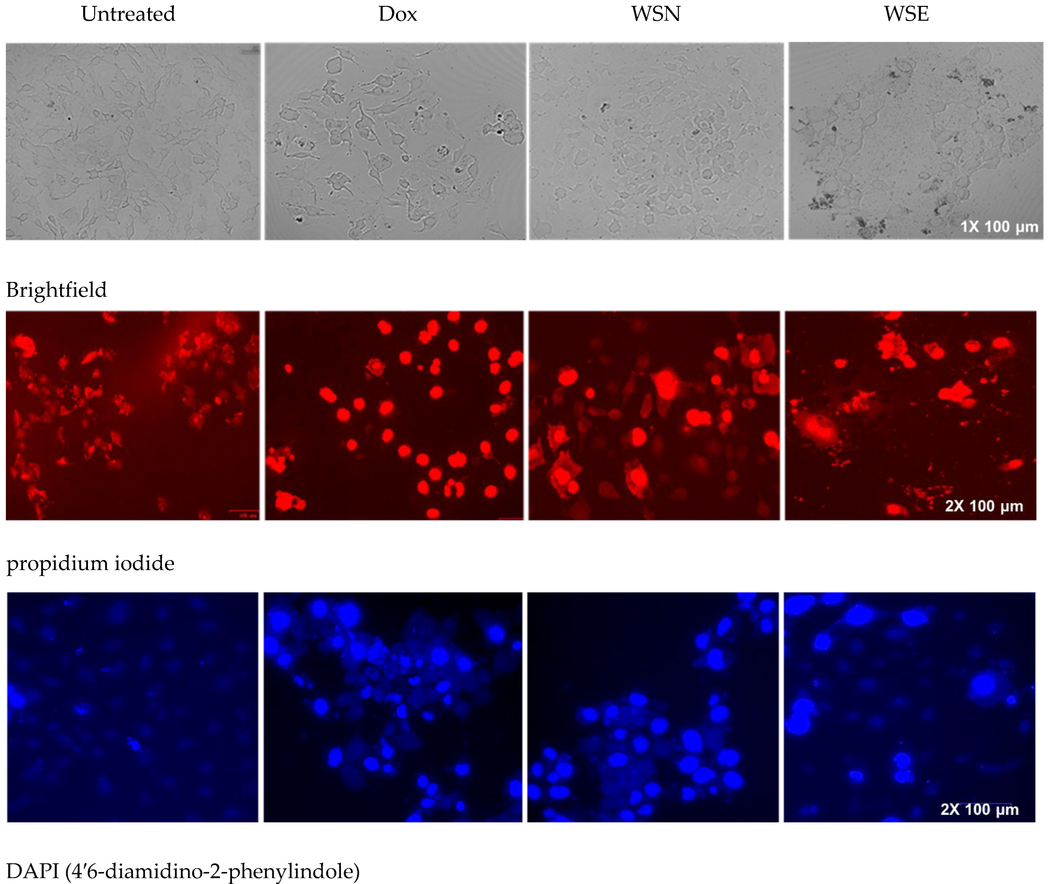 2.6. Determination of W. salutaris-Induced Apoptotic Features Using DAPI/PI Staining