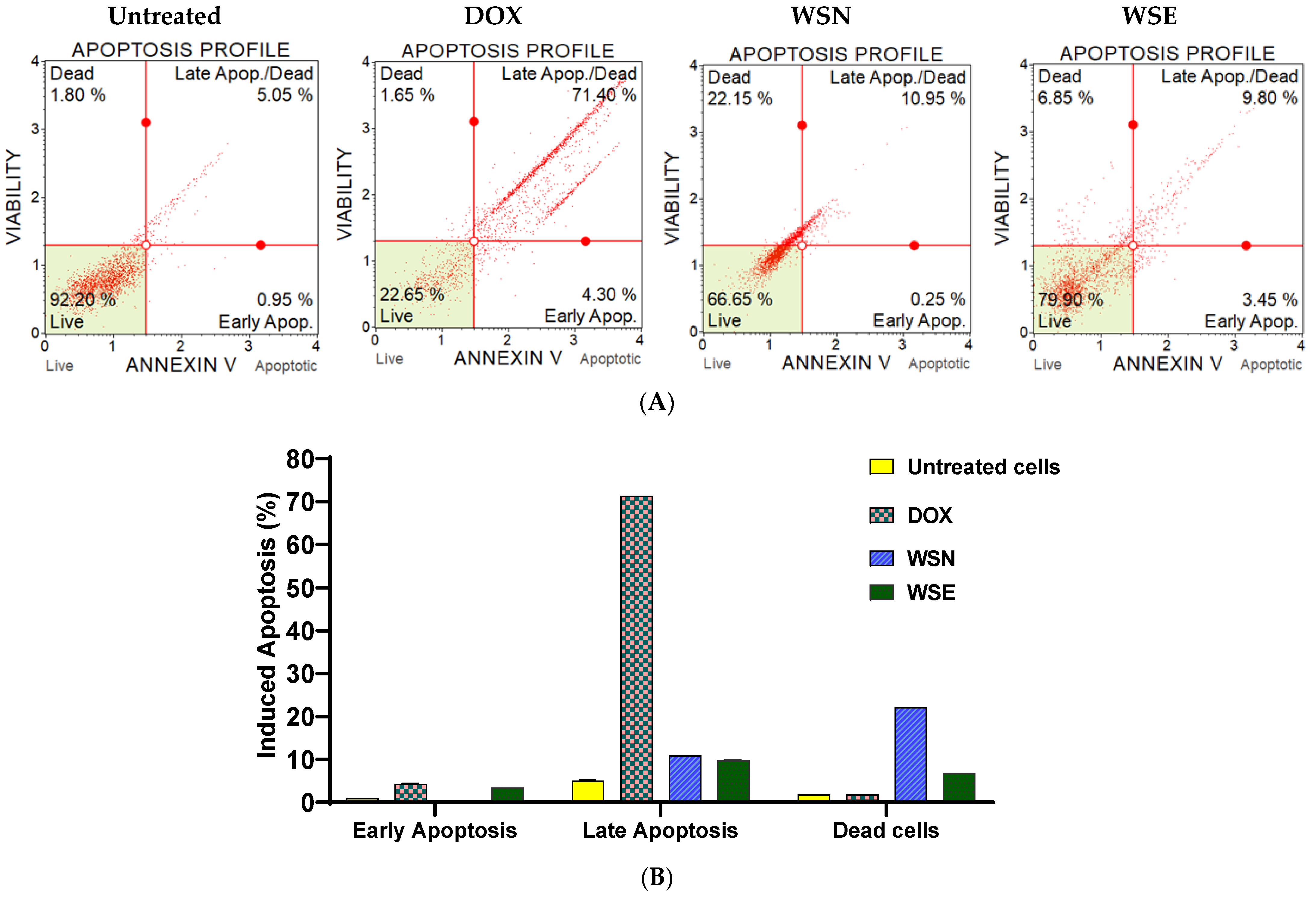4.12. Annexin V-FITC and Propidium Iodide (PI), Analysis by Muse® Cell Analyser