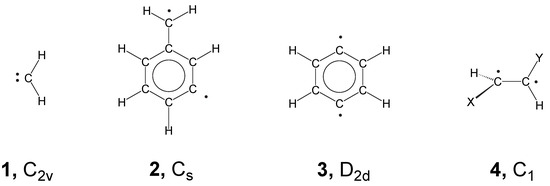 - For a recent review, see Bally, T.; Borden, W. T. Reviews Comp. Chem.; Lipkowitz, K. B., Boyd, D. B., Eds.; Wiley: New York, 1999; Vol. 13, p. 1. [Google Scholar]