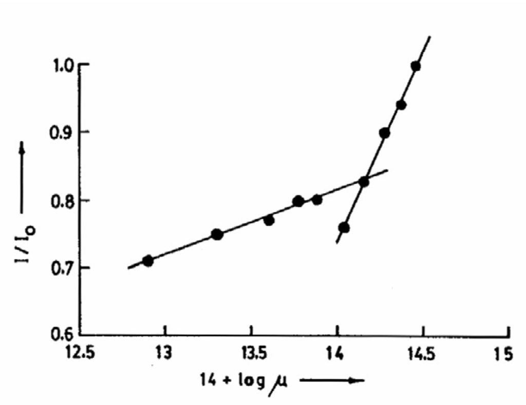 Plot of I/I0 of CAZL vs. 14 + log μ.