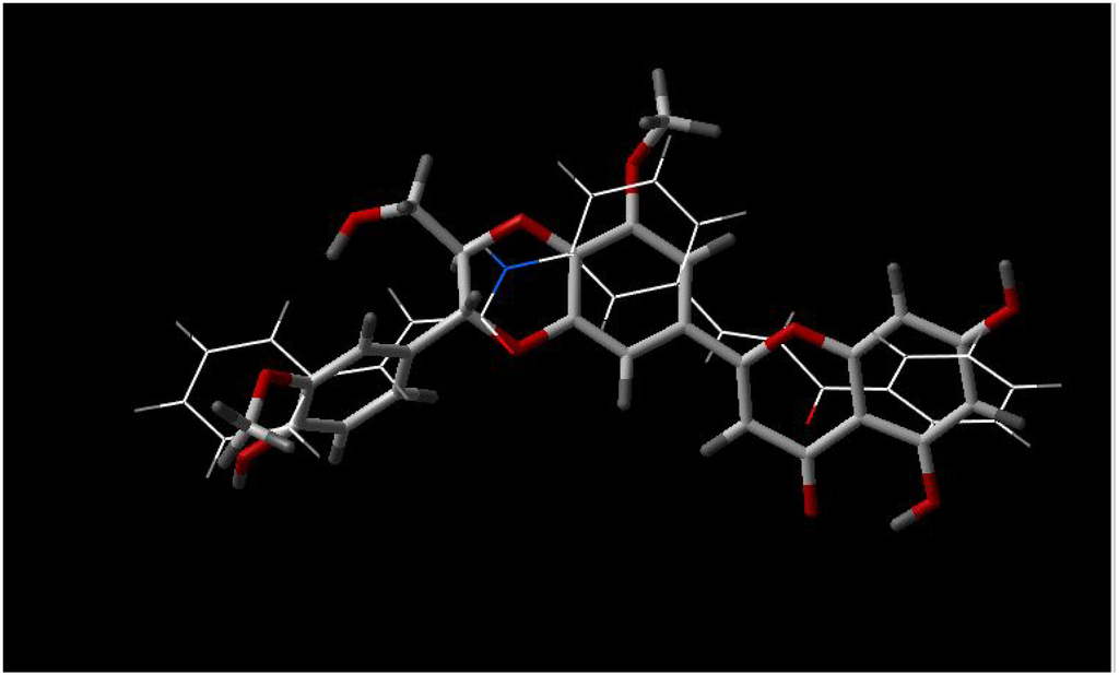 Best fit of optimized 5'-methoxyhydnocarpin (sticks) and INF 240 (wireframe) structures.