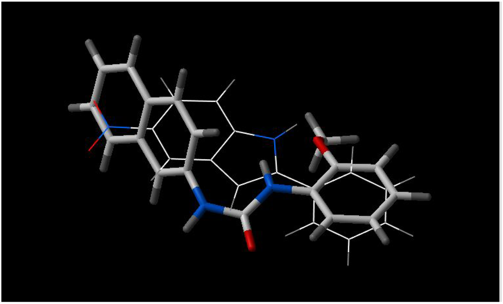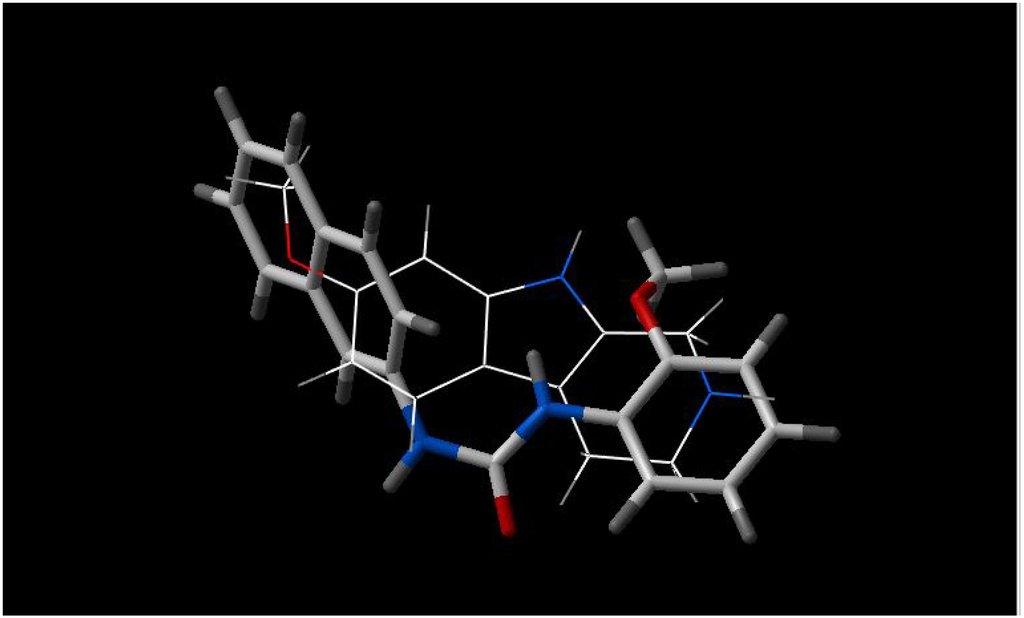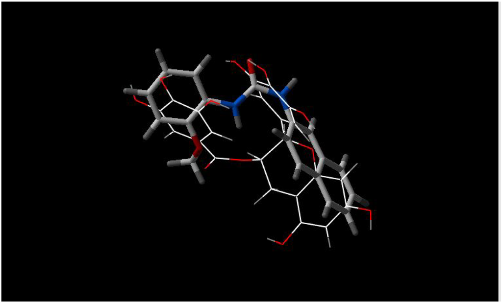 Best fit of optimised INF 271 (sticks) and Reserpine A (wireframe) structures.