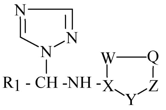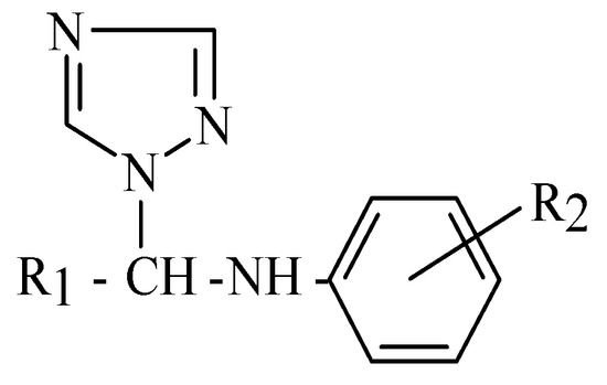 Applying the Free Wilson analysis, in first step, the structural variable indicator IH expresses the replacement of hydrogen atom by the methyl group in the aminomethyl unit. IH is defined as 1 for the N1-aryl/heteroarylaminomethyl-1,2,4-triazoles (1-8, 11-16), and 0 for N1-aryl/heteroarylaminoethyl-1,2,4-triazole derivatives (9,10,17,18). In second step, the other indicator I=CH- is defined as 1 for compounds with =CH- in the six membered ring (1-10), and 0 for compound with –N= group in the six membered ring (11-18) (Table 8).