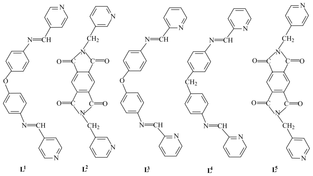1 is prepared by simply refluxing a THF solution containing pyridine-4-carbaldehyde and bis(4-aminophenyl) ether. The ease of synthesis and high yield in a single-step reaction from commercial, inexpensive reagents make this an attractive ligand system. The ligand L