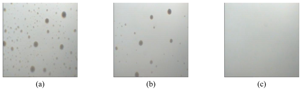 The Microscope image of PAN (pulp) dissolution in [BMIM]Cl at different time: (a) 20min, (b) 60min, (c) 120min.