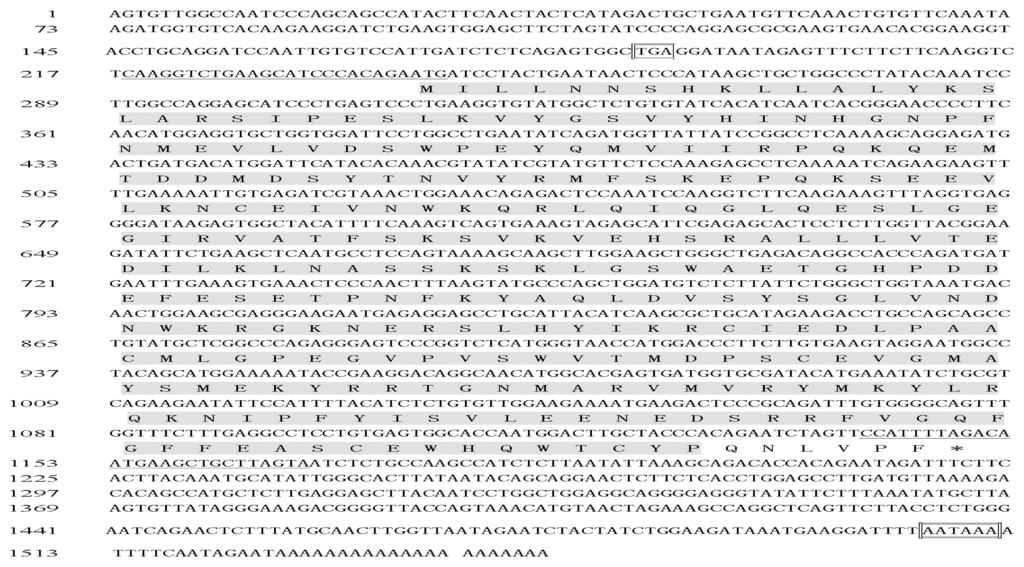 This work was supported by the National 973 program of China, 863 projects of China and the National Natural Science foundation of China (30024001). The nucleotide sequence reported in this study has been submitted to GenBank under accession number DQ084381.