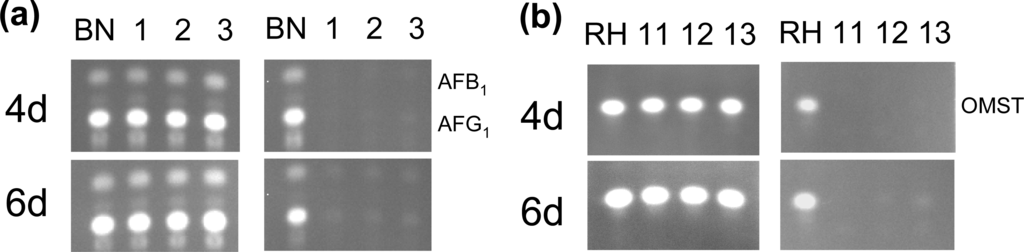 4.7. Semi-quantitative thin layer chromatography (TLC) analysis of aflatoxins and OMST