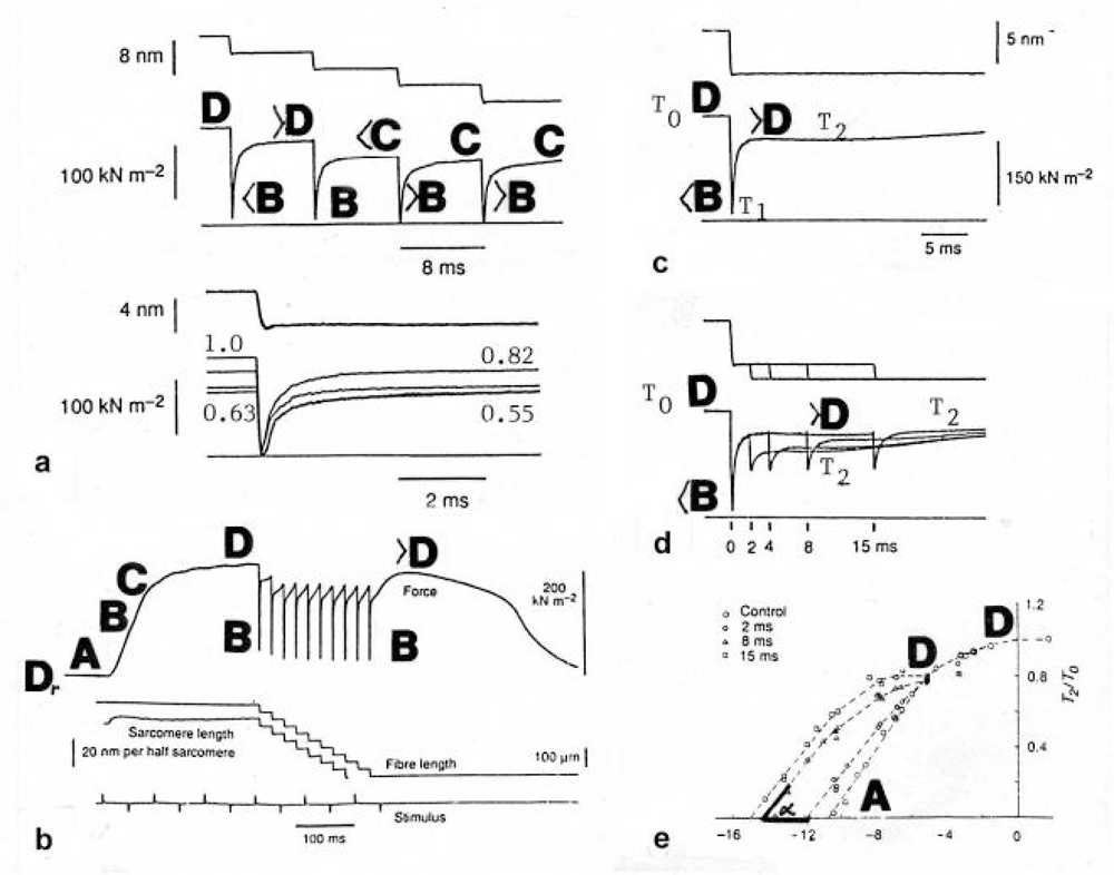 - Ford, LE; Huxley, AF; Simmons, RM. Mechanism of early tension recovery after quick release in tetanized muscle fibres. J. Physiol 1974, 240, 42–43P. [Google Scholar]