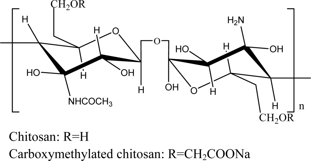 Chemical structures of chitosan and carboxymethyllated chitosan