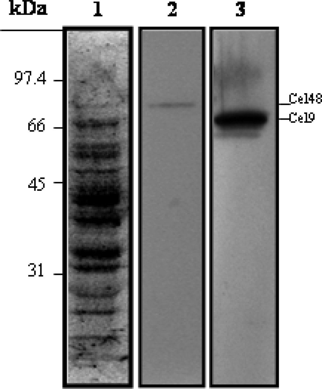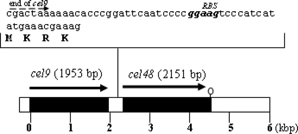 | E. coli PERM123 | E. coli DH5α containing plasmid pPERM123 (pBR322 with a 6 kb-EcoRI-EcoRI cel9-cel48 containing fragment). | [2] |