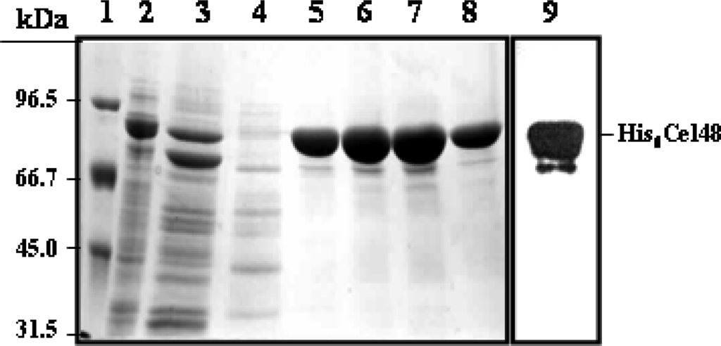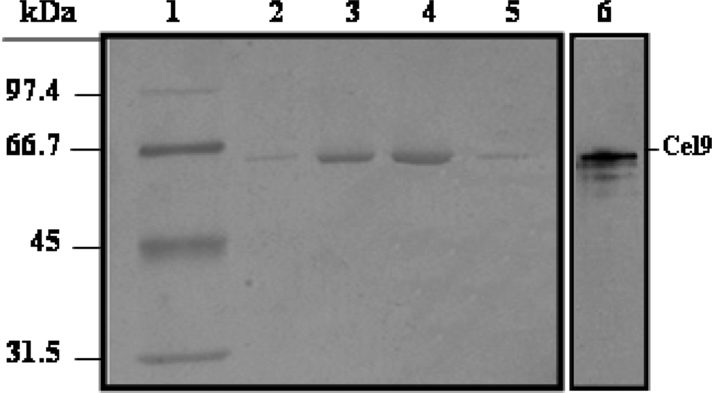 - Irwin, DC; Sheng, S; Wilson, DB. Cloning, expression and characterization of a family 48 exocellulase, Cel48A, from Thermobifida fusca. Eur. J. Biochem. 2000, 267, 4988–4997. [Google Scholar]
