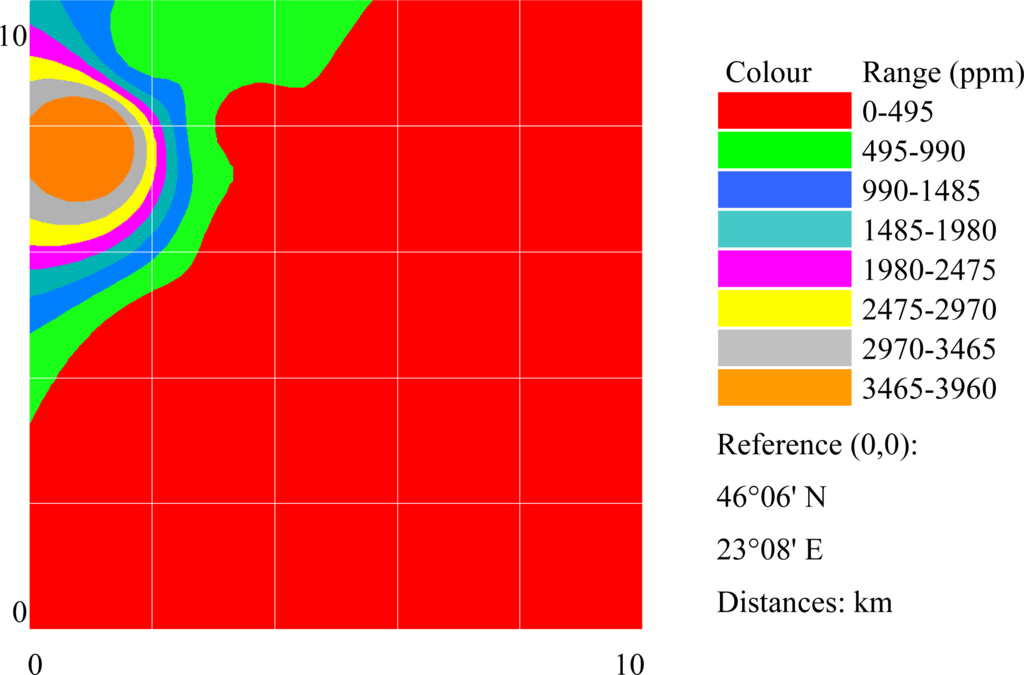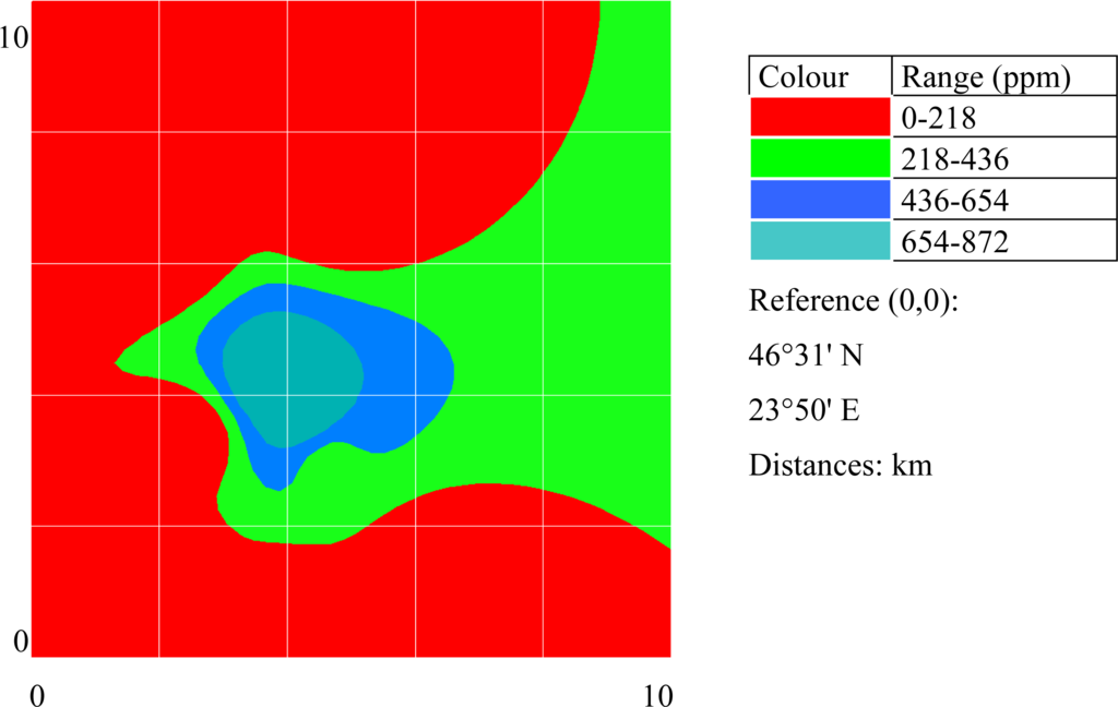 The lead concentration exceeded 16 times the ALS (see Table 6). Spatial distribution of maximum Pb soil concentration in Câmpia Turzii area is presented in Figure 14.