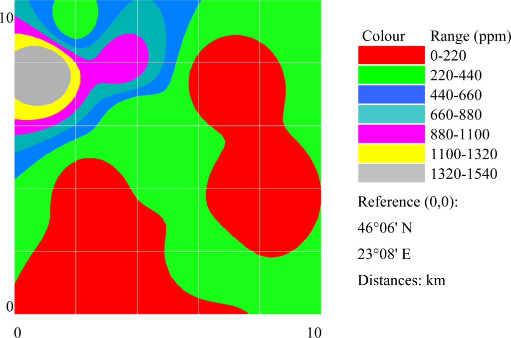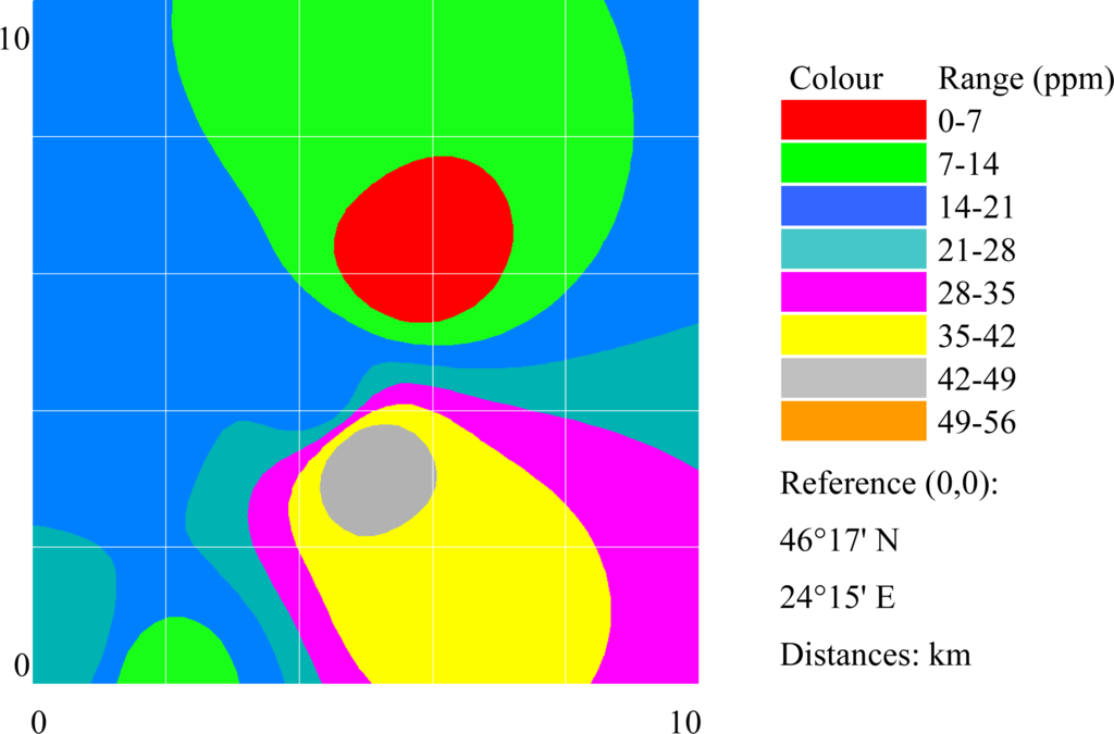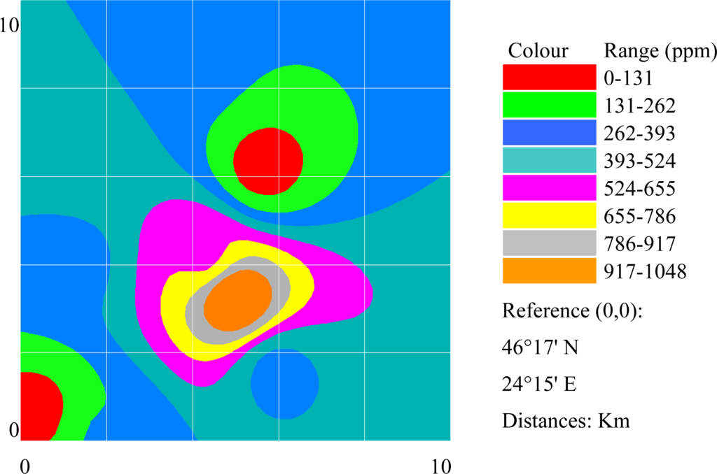 - Zlatna, a west Carpathians mining region, particularly known due to its old polymetallic ores processing enterprises. Zlatna town is known as of the top 10 pollution ‘hot spots’ in Romania [23]. The primary and secondary metallic sulphides are concentrated by floating technology, and metals are extracted trough smelting procedures. The town is also a chemical centre preparing different mineral salts. The soil structures in the area consist of cambiosoils, luvisoils and regosoils, with high and moderate vulnerability to the pollution. Due to the pollutant industries in Zlatna, the mean annual atmospheric emissions were of 150 450 tones SO2 and 3498 tones dust laden with Pb, Zn, Cu, Cd, Sb, Bi and As in 1993 [24]. These values were of 41 000 tones SO2 and 2715 tones dust (Pb: 44%, Zn: 26%, Cu: 21%) on research reported by Clepan in 1999 [25]. It is known that Zlatna soil (around the industrial complex) is loaded with Pb, Cu, Zn and Cd at content levels exceeding up the maximum allowable limits [26].