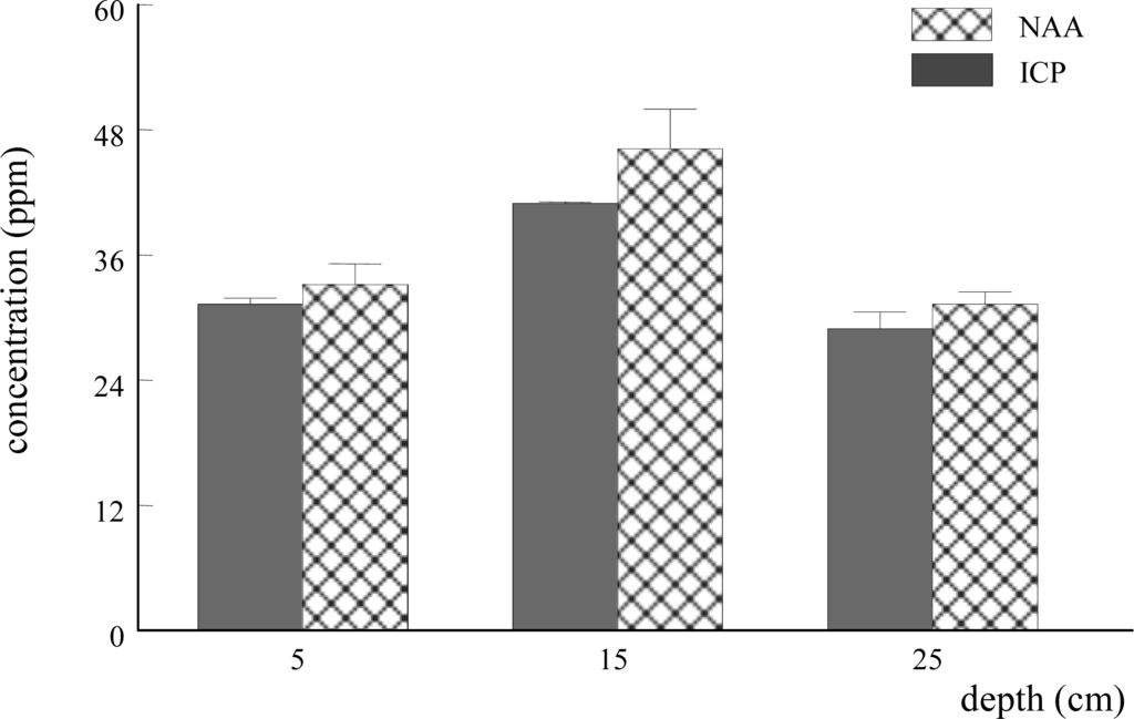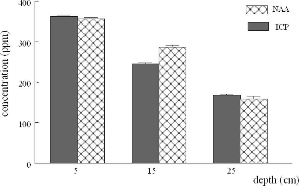The same researcher in all locations extracted the soil samples. The same person made the IPC and NAA determinations. Due to the limited financial resources there was not possible to carry out more than one determination for a given depth and a give location. Thus, the uncertainty of measurements [31,32] was not possible to be determined.