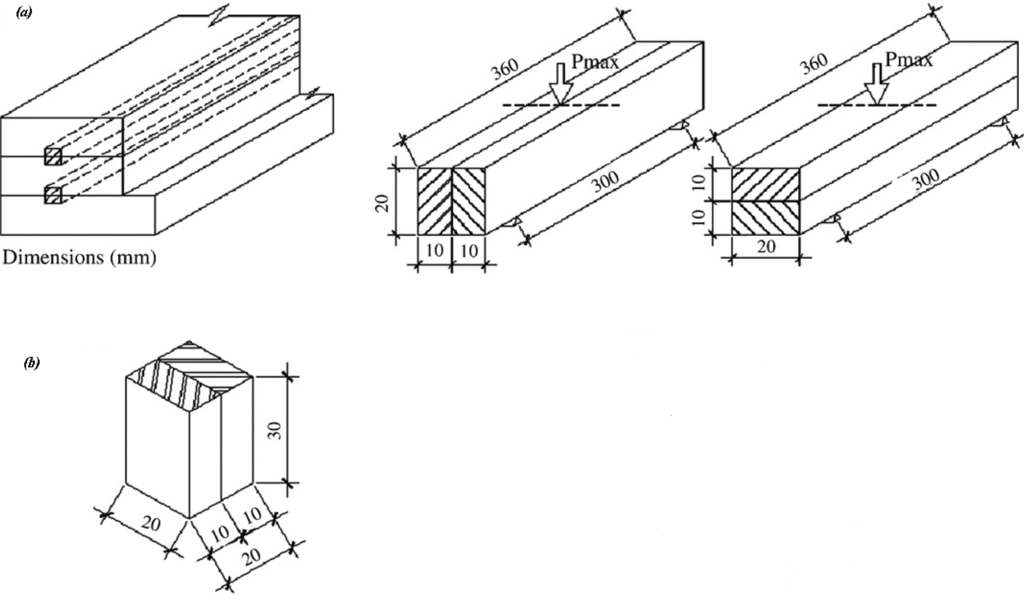 Dimensions of the test samples: (a) MOR and MOE, (b) compression strength.