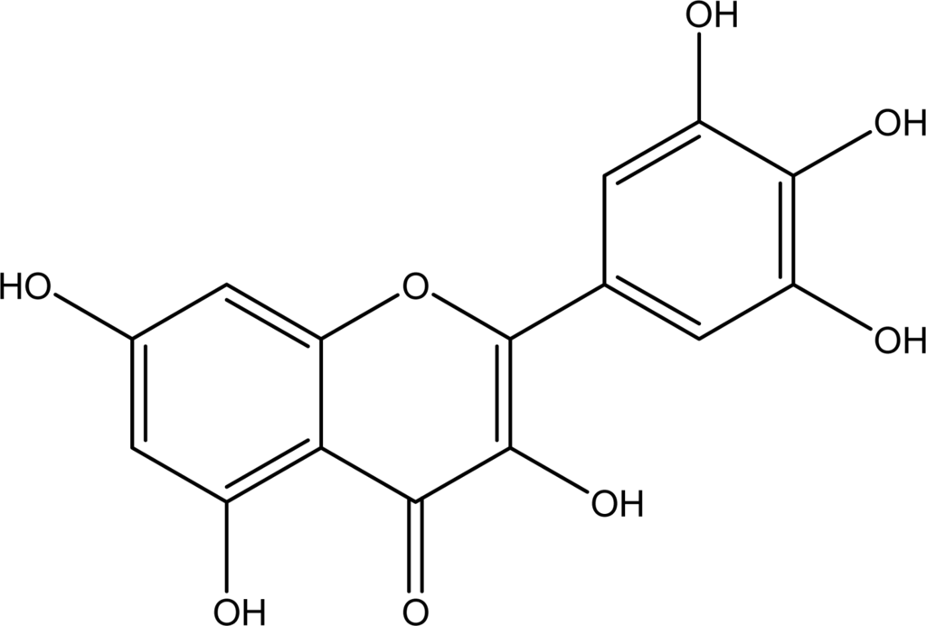 Recently, Lee and coworkers reported that myricetin inhibited 12-O-tetradecanoylphorbol-13-acetate (phorbol ester)-induced COX-2 expression in JB6 P+ mouse epidermal (JB6 P+) cells by suppressing activation of nuclear factor kappa B (NF-κB). Myricetin inhibited phorbol ester-induced upregulation of COX-2 protein, while resveratrol at the same concentration did not exert significant effects. The phorbol ester-induced production of prostaglandin E2 was also attenuated by myricetin treatment. Myricetin inhibited both COX-2 and NF-κB transactivation in phorbol ester-treated JB6 P+ cells. Myricetin blocked the phorbol ester-stimulated DNA binding activity of NF-κB. In addition, red wine extract inhibited phorbol ester-induced COX-2 expression and NF-κB transactivation in JB6 P+ cells. These results revealed that myricetin contributes to the chemopreventive effects of red wine through inhibition of COX-2 expression by blocking the activation of NF-κB [].